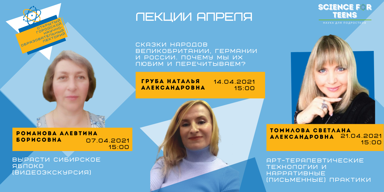 В рамках Открытого городского научно-образовательного лектория «Science for teens» (Наука для подростков) Сибирского государственного университета науки и технологий имени академика М.Ф. Решетнева для обучающихся 8-11 классов в апреле 2021 года состоятся заключительные лекции проекта.