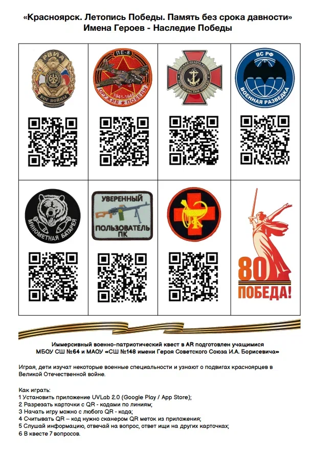 Городской военно-патриотический фестиваль «Красноярск. Летопись Победы. Память без срока давности» - это уникальное мероприятие для обучающихся муниципальных общеобразовательных учреждений г. Красноярска, включающее в себя создание исследовательского проекта, театрализованную постановку, а также смотр строевой подготовки. В 2025 году фестиваль посвящен увековечиванию памяти великого подвига советского народа в Великой Отечественной войне 1941-1945 гг.