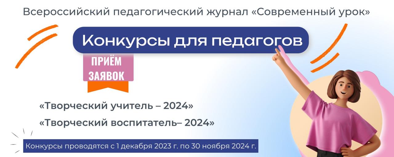 Продолжается прием заявок на участие во Всероссийских конкурсах на лучшую публикацию «Творческий учитель – 2024», «Творческий воспитатель – 2024».