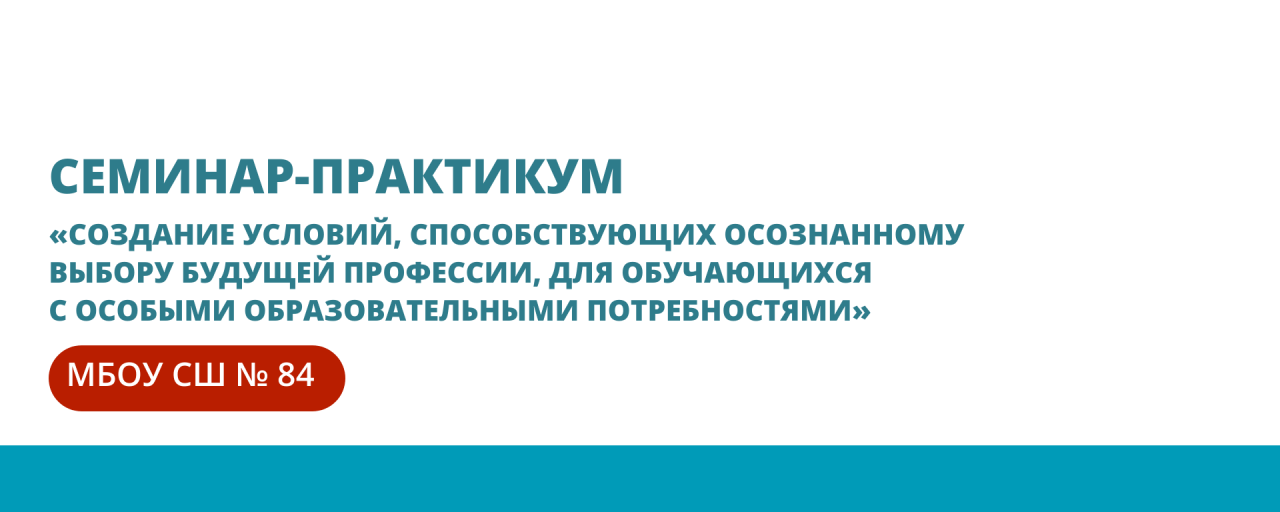 30 января в соответствии с планом работы городской базовой площадки по направлению «Создание условий для самоопределения обучающихся с особыми образовательными потребностями в профессионально – трудовой сфере» состоялся семинар-практикум «Создание условий, способствующих осознанному выбору будущей профессии, для обучающихся с особыми образовательными потребностями». Организатором выступила разработческая городская площадка МБОУ «Средняя школа № 84».Участниками практикума стали учителя и узкие специалисты школ города Красноярска.