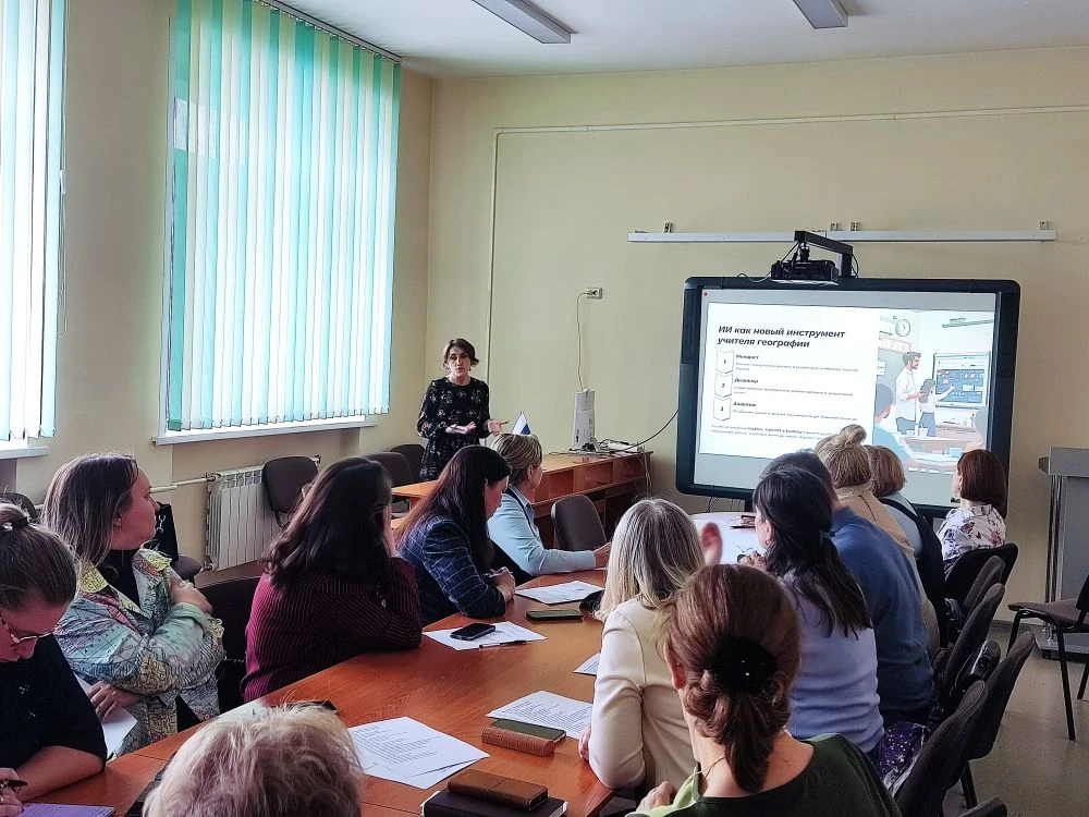 На заседании обсудили возможности и перспективы внедрения технологий искусственного интеллекта (ИИ) в учебный процесс по географии, поделились практическим опытом и выработали рекомендации для учителей.