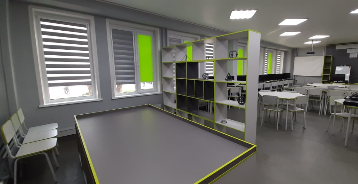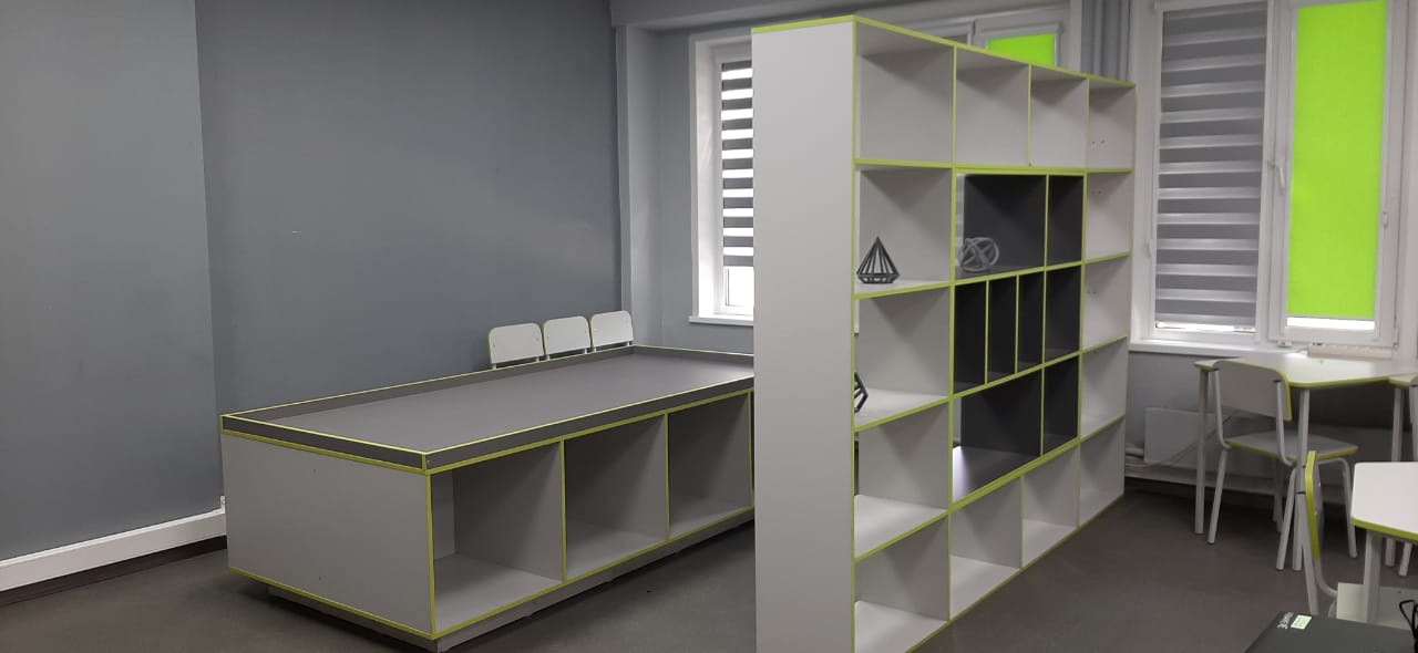 · пространство зонировано и оснащено мобильной мебелью, поэтому легко трансформируется в зависимости от целей и типа занятия для обучения и демонстрации результатов, для групповой и индивидуальной работы