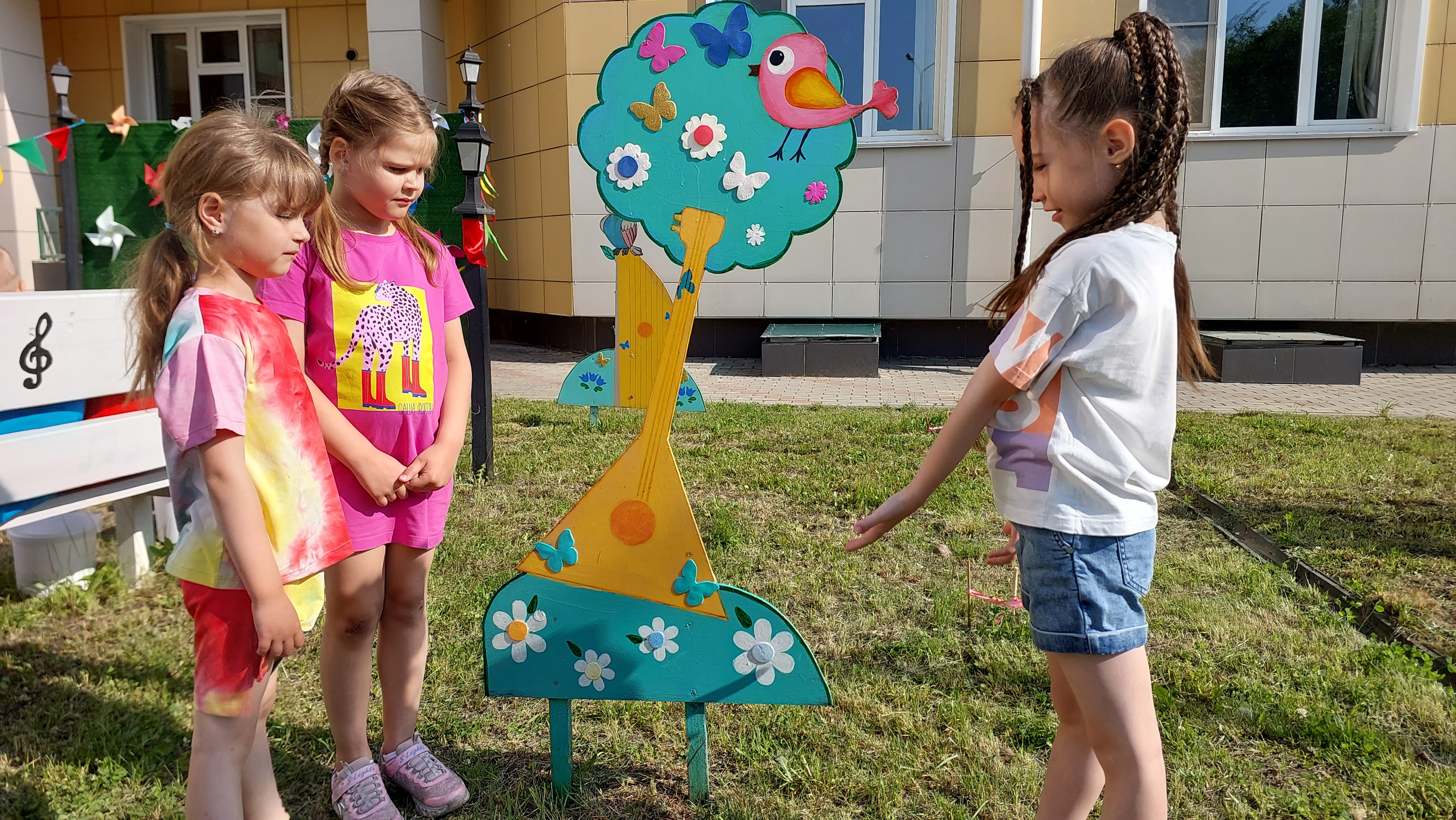 Для формирования интереса к музыкальной деятельности, и развития творческих способностей у детей старшего дошкольного возраста была выбрана уличная площадка территории ДОУ с учетом летнего периода и необходимых требований. Площадка «Остров творчества» — развивающий комплекс, который в игровой форме приобщает детей к искусству. Состоит из музыкальных инструментов, сцены, лавочек и альпийской горки. Это место, где дети отдыхают и одновременно становятся участниками музыкальной гостиной, слушают музыку, песни о Сибири, малой родине, участвуют в детских концертах, конкурсах. И конечно же, играют на музыкальных инструментах, которые сделали своими руками из бросового материала, экспериментируют со звуками — это ничем не ограниченный полет фантазии, свобода самовыражения, радости.