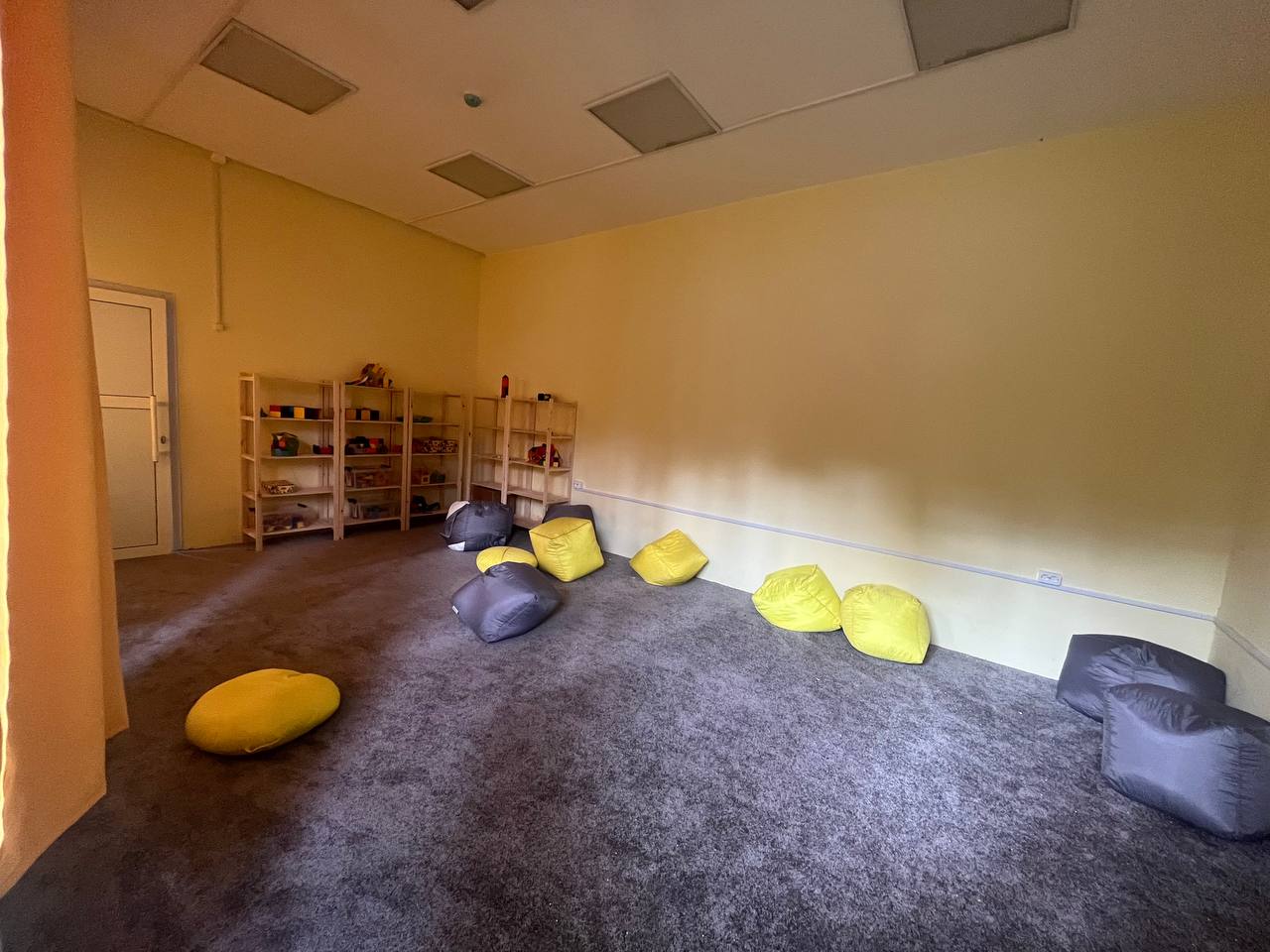 Комната игр и "Мягких" практик - помещение 25м2, оборудованное мягким покрытием, пуфиками, в нем проходят занятия Тико-конструированием, реализуется программа "Границы моего Я", проводятся тренинги и игровые процедуры.