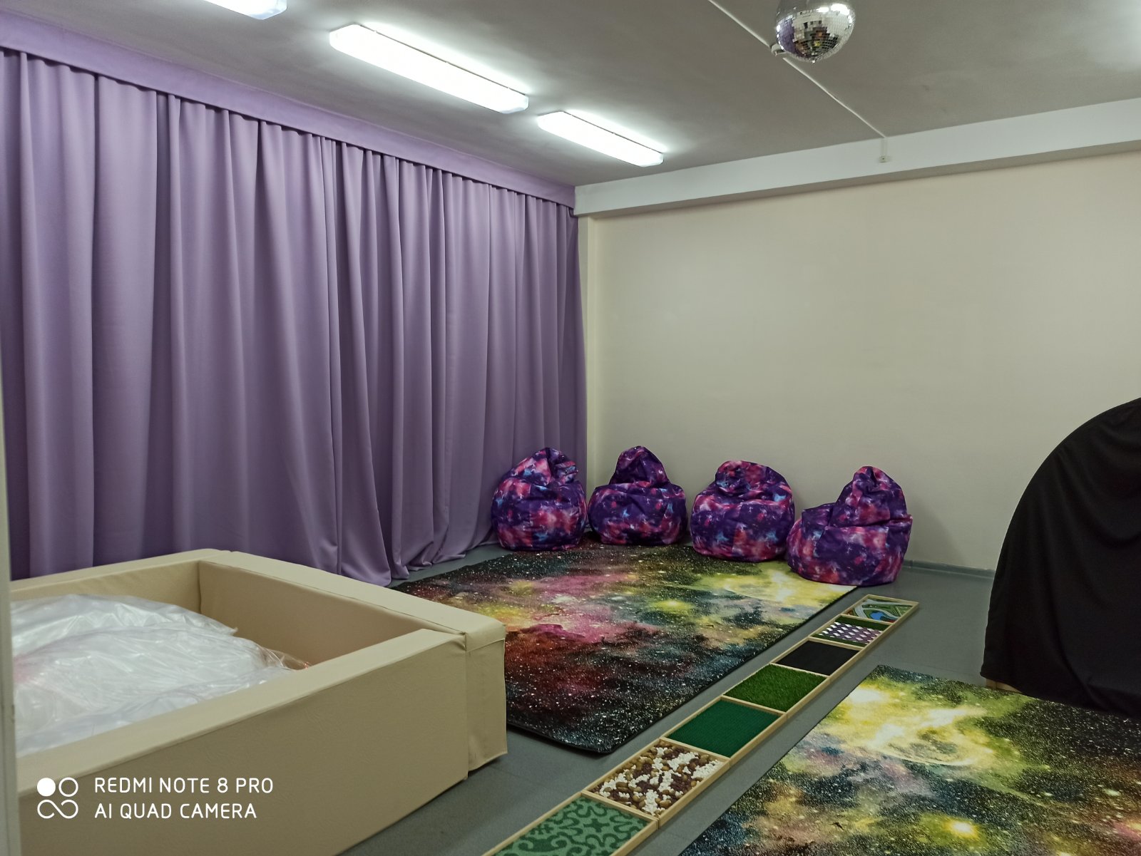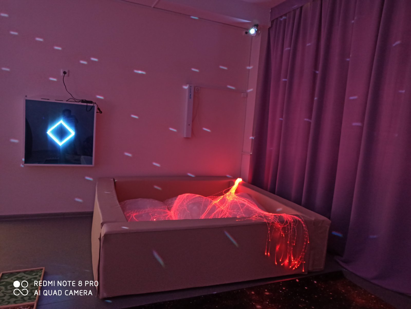 комфорта и безопасности, способствующая улучшению эмоциональных состояний, снятию нервного перевозбуждения и сохранению включенности в игру. Сенсорная развивающая комната укомплектована следующим оборудованием: мягкий сухой бассейн с фибероптическим волокном; комплект «Сенсорный уголок Моно» с воздушно пузырьковыми колоннами и подсветкой; волшебная пещера для уединения и игр; зеркальный шар; светозвуковое интерактивное панно «Бесконечность»; фибероптический сухой душ; арома лампа; столы для рисования песком; комплект сенсорных мячиков; тактильная дорожка; тактильная «Определи на ощупь»; мягкие модули Совы; кресла груши. Занятия в сенсорной развивающей комнате направлены на решение таких задач, как: поддержание оптимального уровня бодрствования; сохранение активности и концентрации внимания, необходимых для обучения; переключение между блоками развивающих и коррекционных занятий; коррекция деструктивных аспектов поведения