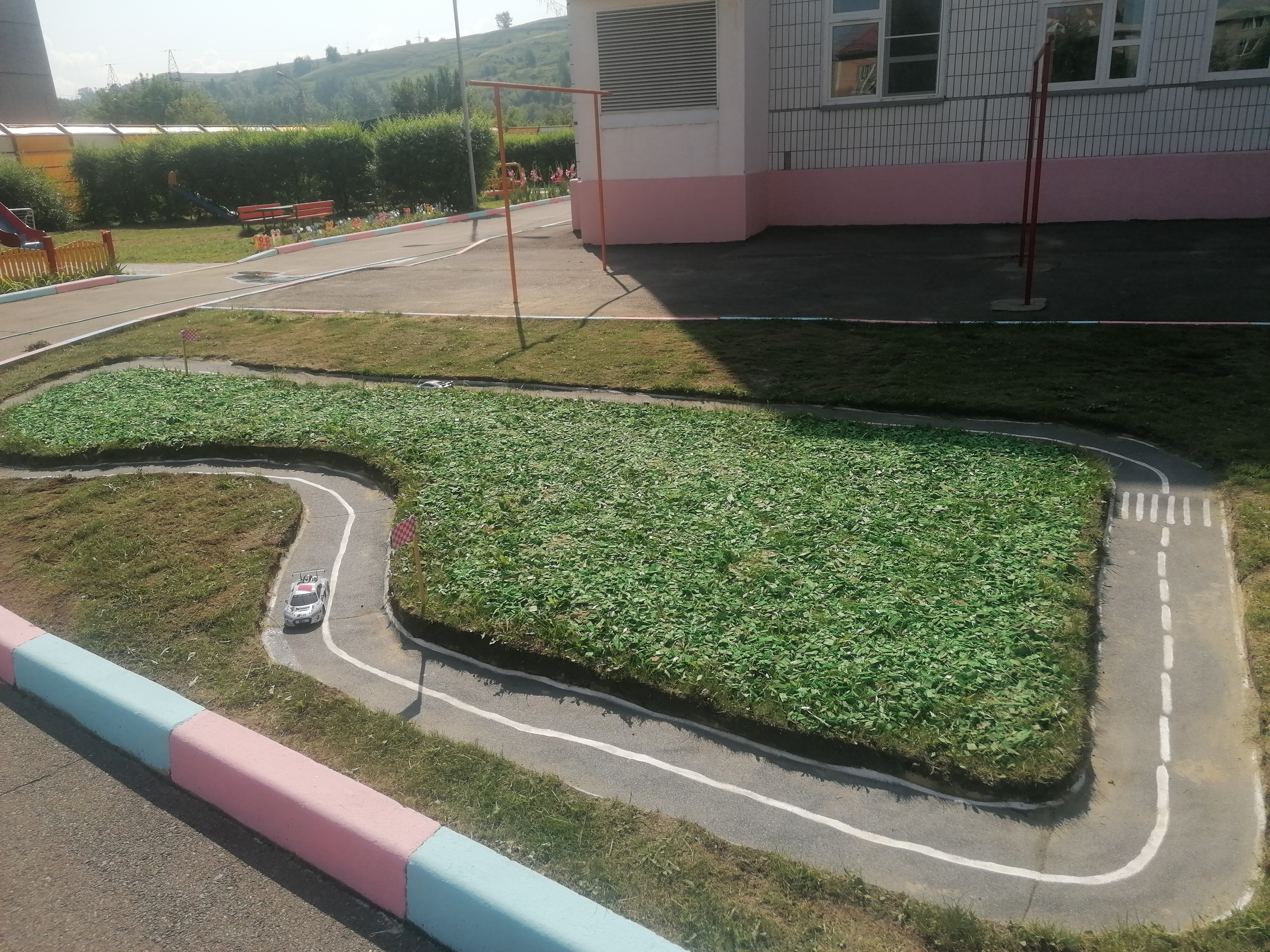 В материально-техническом плане были определены места территории, оптимальные для обустройства нового инфраструктурного пространства, расположенного в непосредственной близости со спортивной площадкой и на ней (по логике является единым пространством). Для обеспечения среды инфраструктурного пространства было закуплено и изготовлено оборудование: для мини- площадки гольфа, беговелы, радиоавтомобили и др.