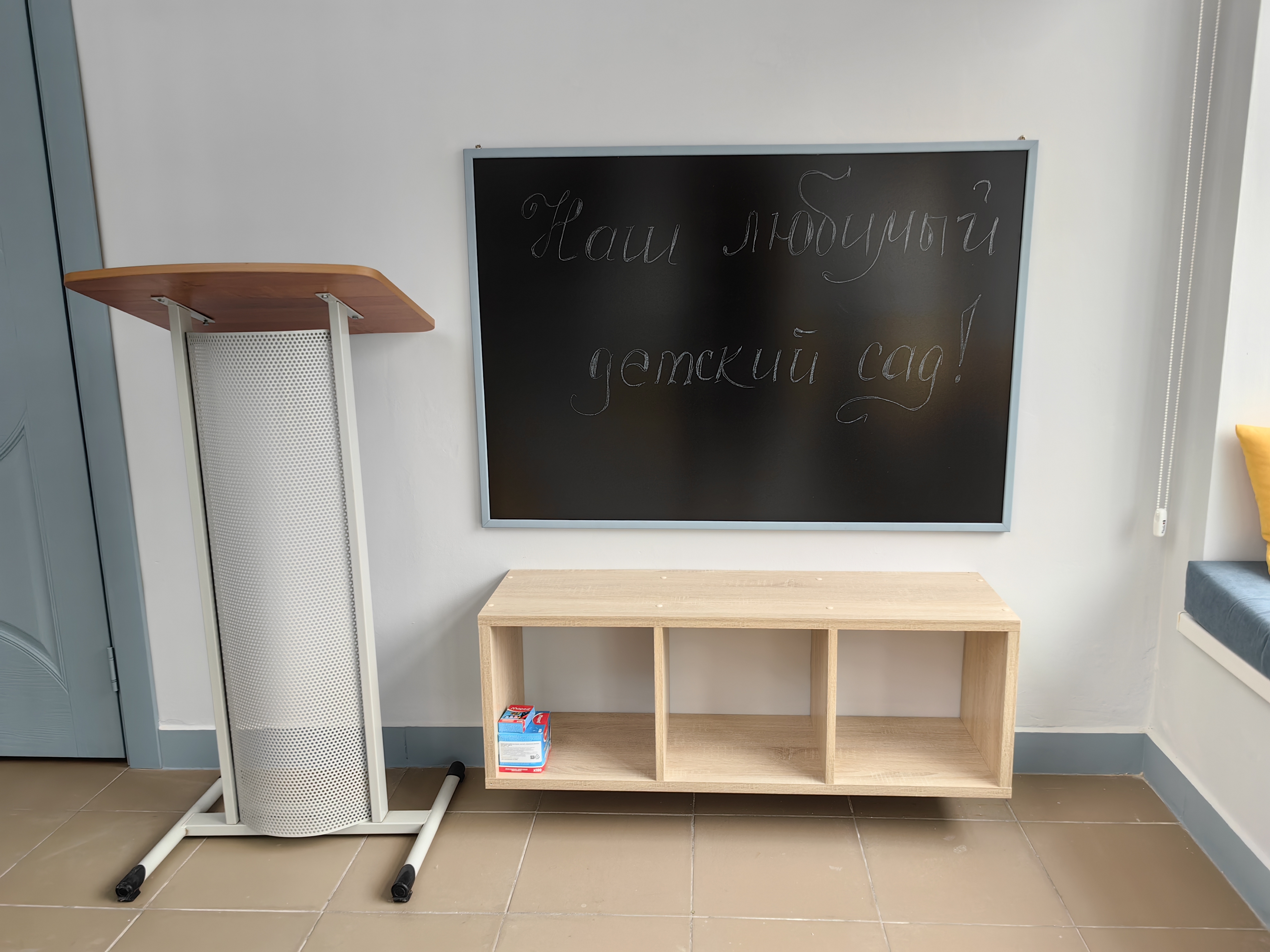 Образовательное пространство оснащено интерактивной доской, проектором, ноутбуком, выходом в сеть Интернет, магнитной доской – предназначенной для дидактических игр по составлению слов, узоров и меловой доской, которую тоже можно использовать для игр и занятий, столами для дошкольников. Наработан материал в электронном виде: презентации, каталоги мультфильмов.