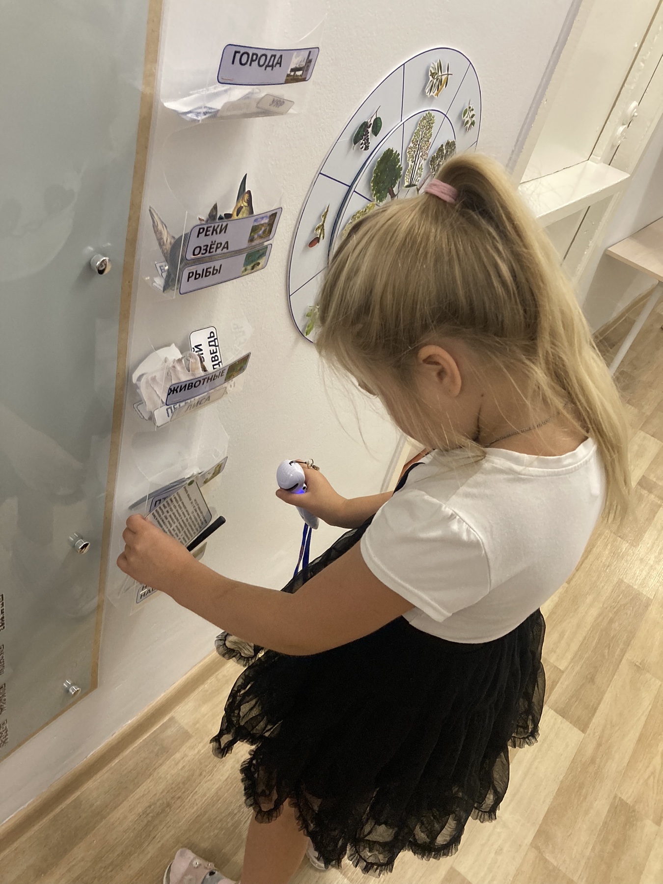 - познавательная деятельность через использование QR кодов: просмотр познавательных видеороликов, просмотр познавательных тематических мультфильмов, виртуальные экскурсии; познавательная деятельность через использование «Умной ручки - Знаток»: самостоятельное прослушивание коротких сообщений с интересными фактами о животных и не только;