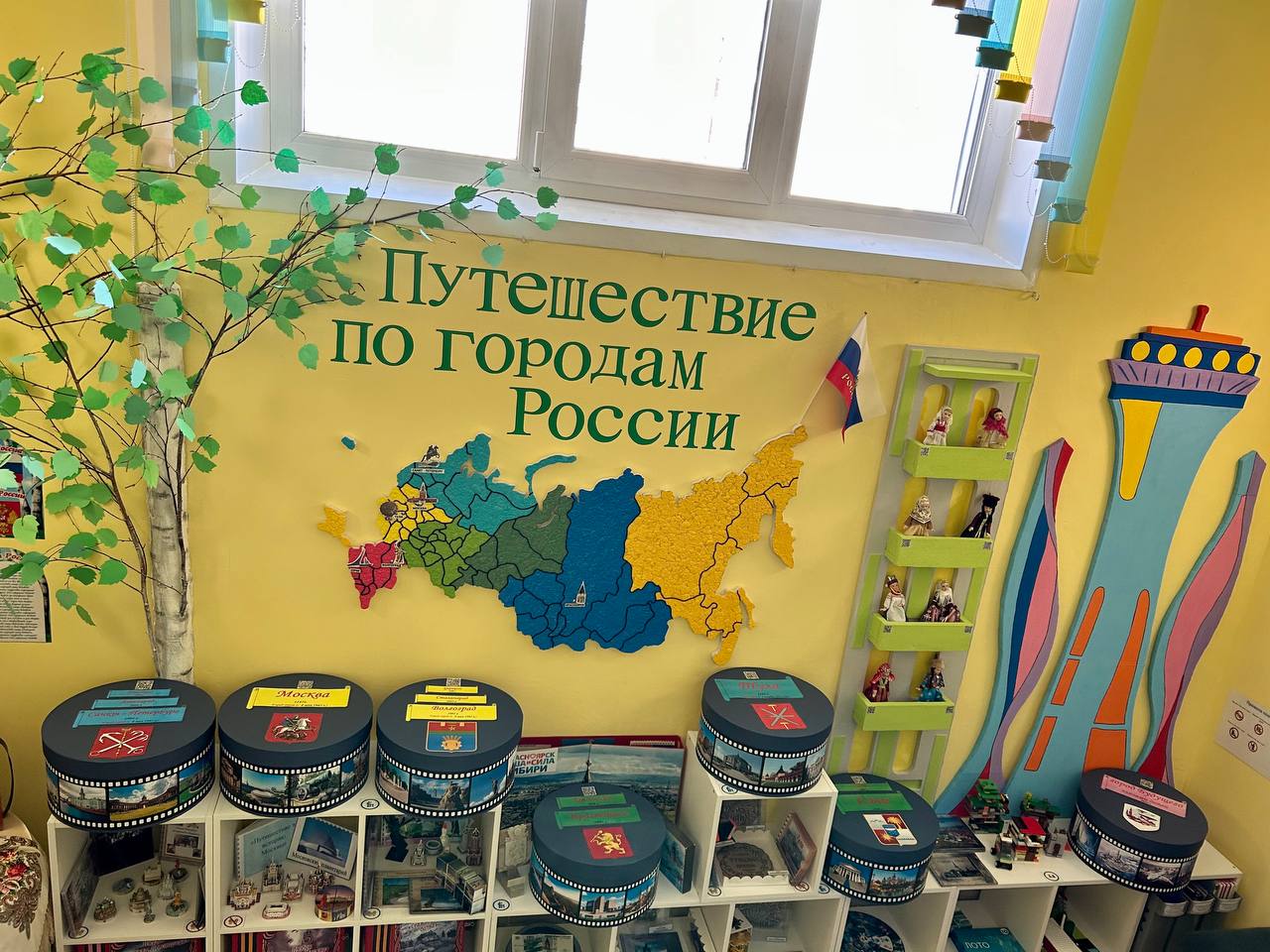 Среда ДОУ преобразована в образовательное пространство, способствующее знакомству дошкольников с разнообразием городов в России, их культурой, обычаями, традициями, достопримечательностями.