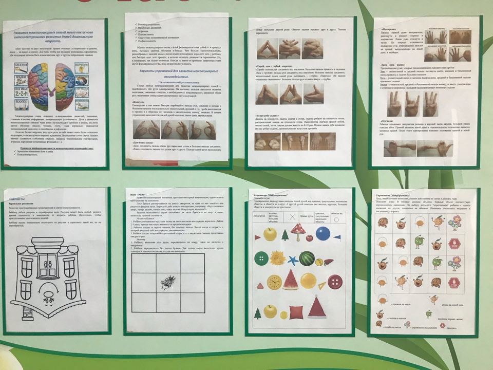 В зонах ожидания размещается стендовая информация для родителей, с целью обогащения знаний по использованию нейропсихологических игр в домашних условиях. А также для профилактики и предупреждения трудностей в развитии и обучении детей.