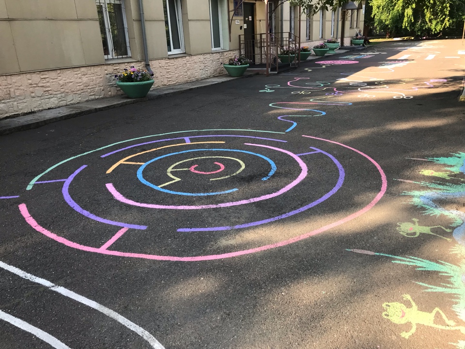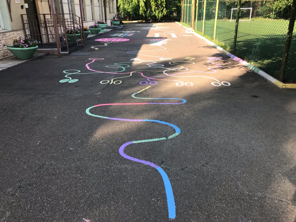 На прилегающей территории Центра также организовано нейропсихологическое пространство. Выполнена разметка игры «Классики» (в различных вариациях), которые способствуют развитию у ребенка глазомера, ловкости, координации движений, межполушарного взаимодействия, моторной функции, вниманию, снятию психоэмоционального напряжения и т.д. А также игры «Лабиринт», которые развивают пространственные представления и понятия. На территории Центра имеется спортивная площадка, которая позволяет расширять возможности применения нейропсихологических игр.