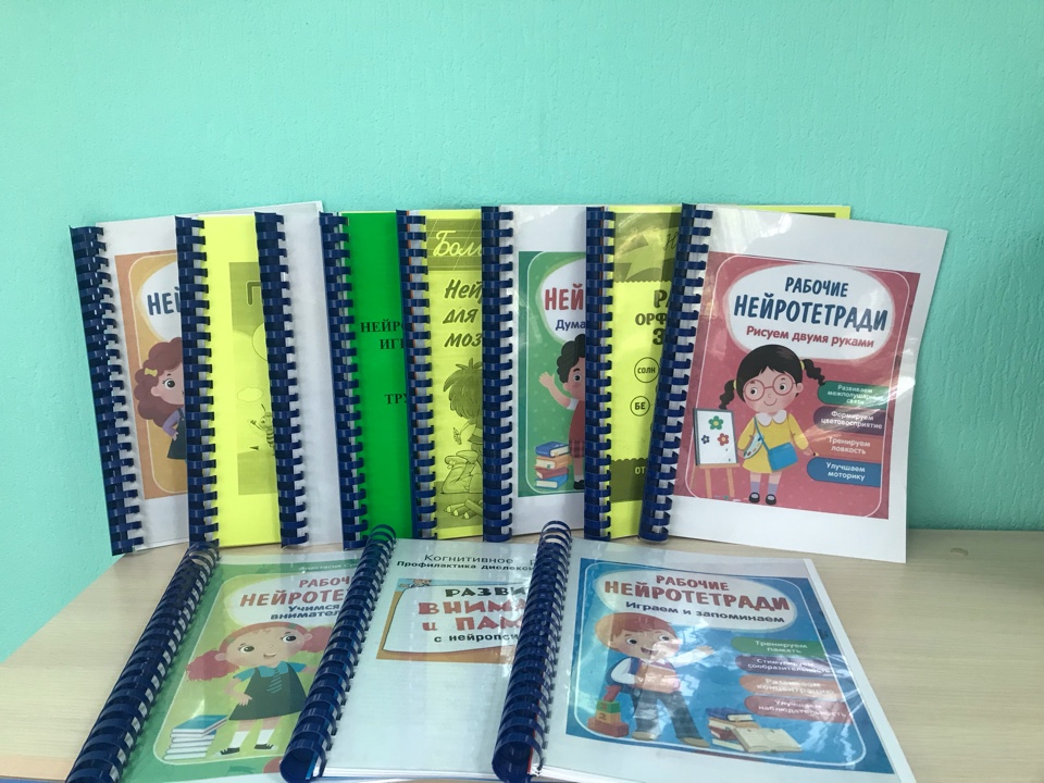 В кабинетах Центра имеется арсенал нейропсихологических игр и упражнений, а также оборудования.В зонах ожидания размещается стендовая информация для родителей, для детей в зонах ожидания организовано пространство в виде бизибордов. На прилегающей территории Центра также организовано нейропсихологическое пространство. Выполнена разметка игры «Классики» (в различных вариациях), которые способствуют развитию у ребенка глазомера, ловкости, координации движений, межполушарного взаимодействия, моторной функции, вниманию, снятию психоэмоционального напряжения и т.д. А также игры «Лабиринт», которые развивают пространственные представления и понятия. На территории Центра имеется спортивная площадка, которая позволяет расширять возможности применения нейропсихологических игр.