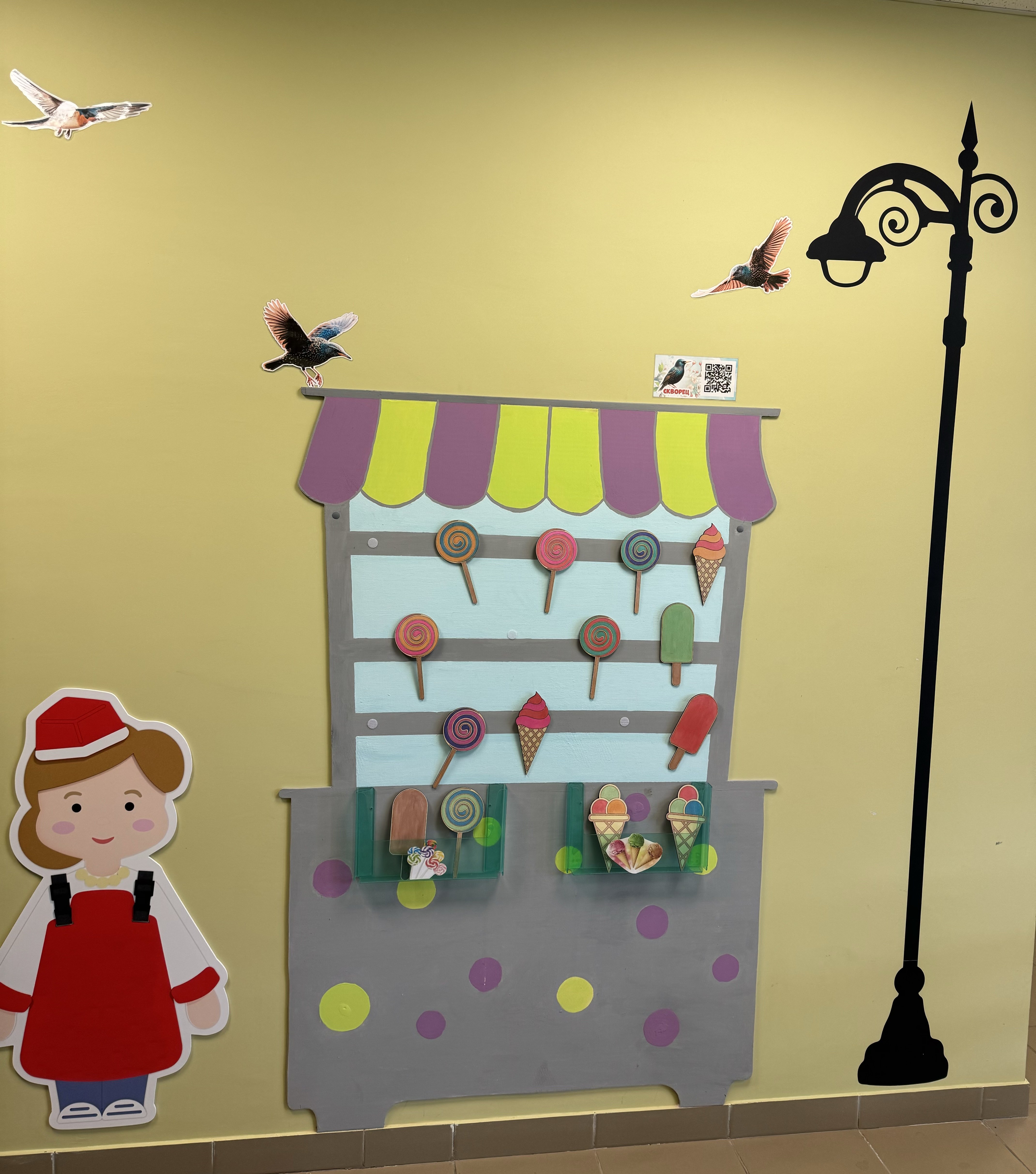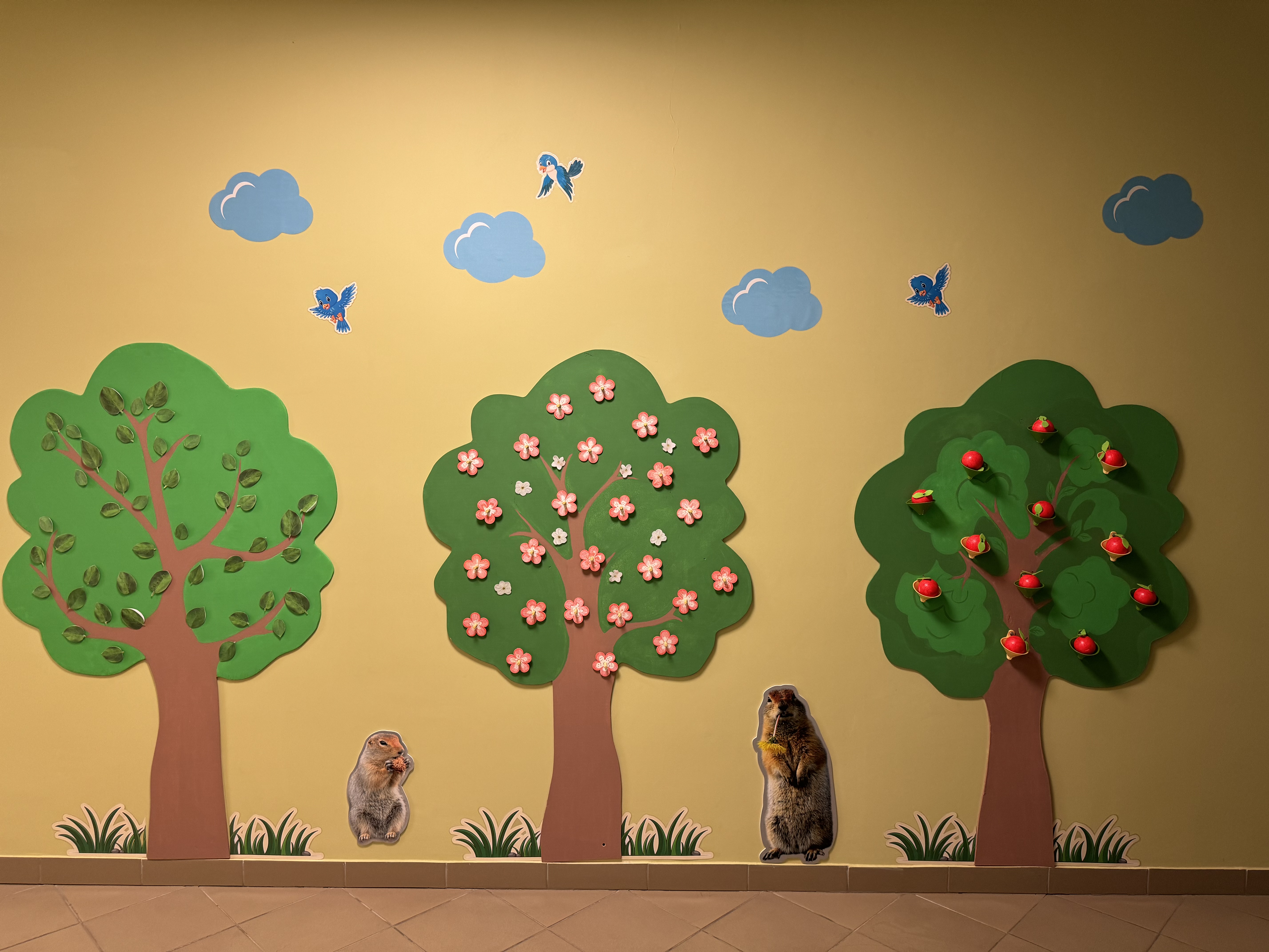 В холле 2 этажа планируем продолжить оснащение предметно-пространственной среды, как место детской самореализации.