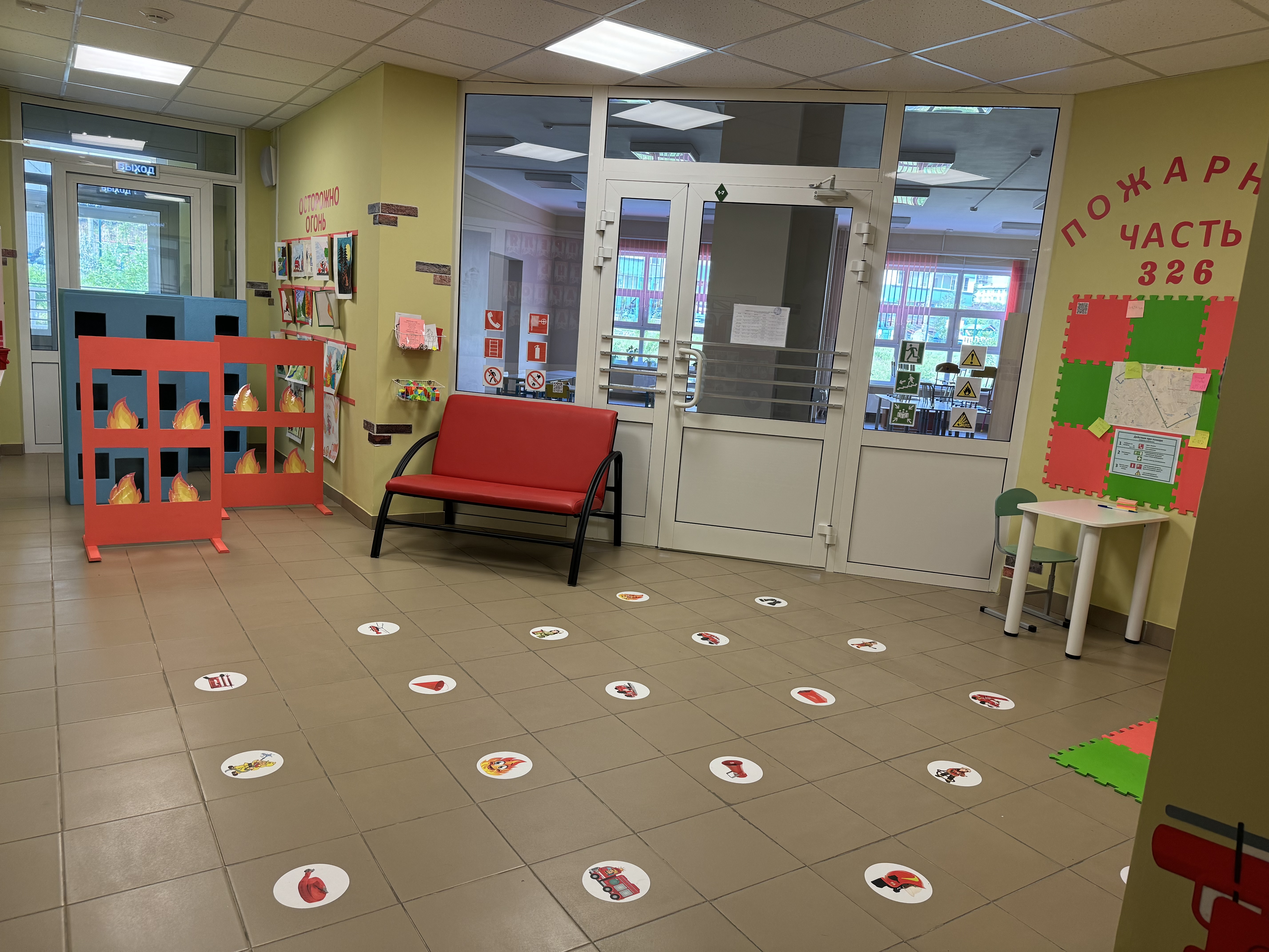 «Городская социальная среда» расположена на первом этаже в холле детского сада, где обеспечен свободный доступ к материалам, оборудованию и играм детям, родителям и сотрудникам детского сада. Выбор места обусловлен ещё тем, что рядом находится помещение, в котором есть возможность проводить различные мероприятия, физическую подготовку, самостоятельную деятельность детей и использовать это помещение для хранения атрибутов и материалов для сюжетно – ролевых игр. Еще одним фактором является то, что холл первого этажа является самым проходимым местом в детском саду.