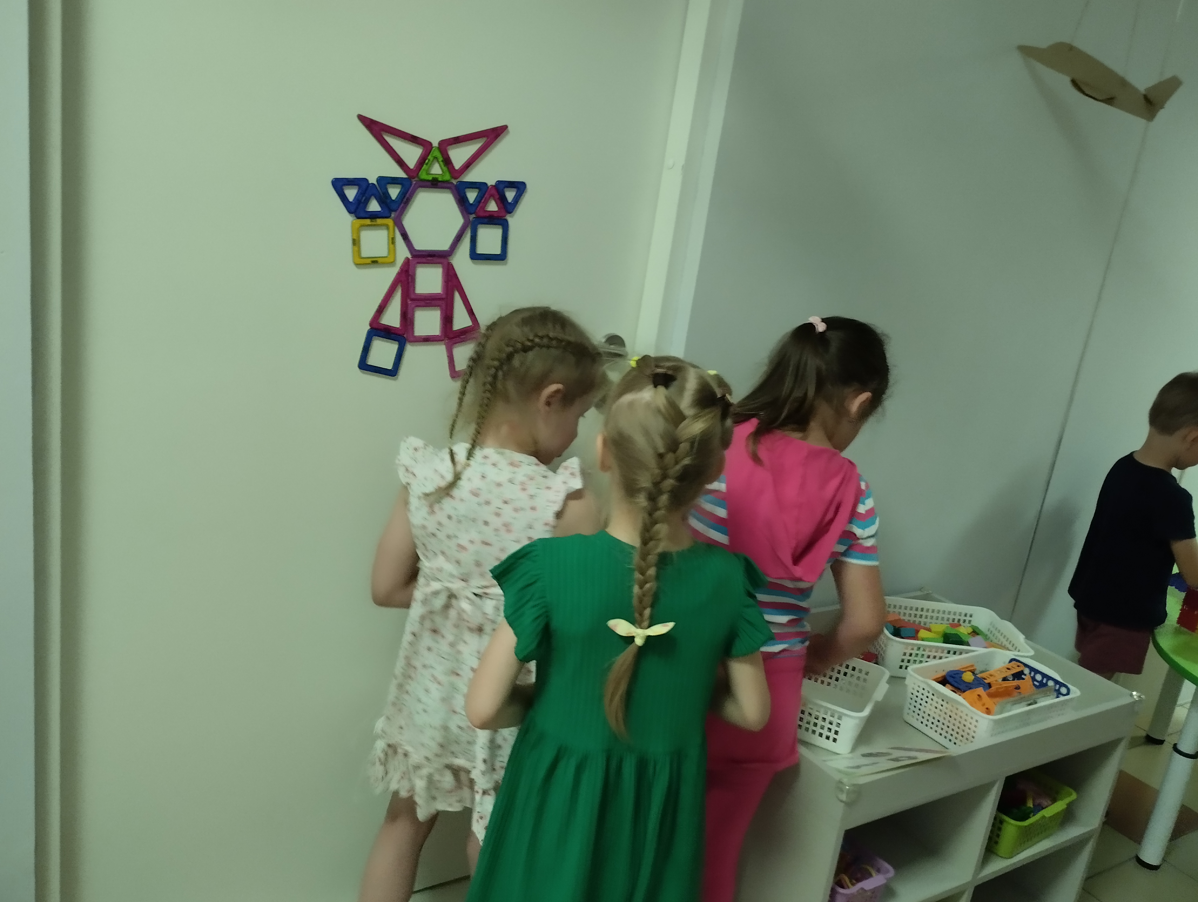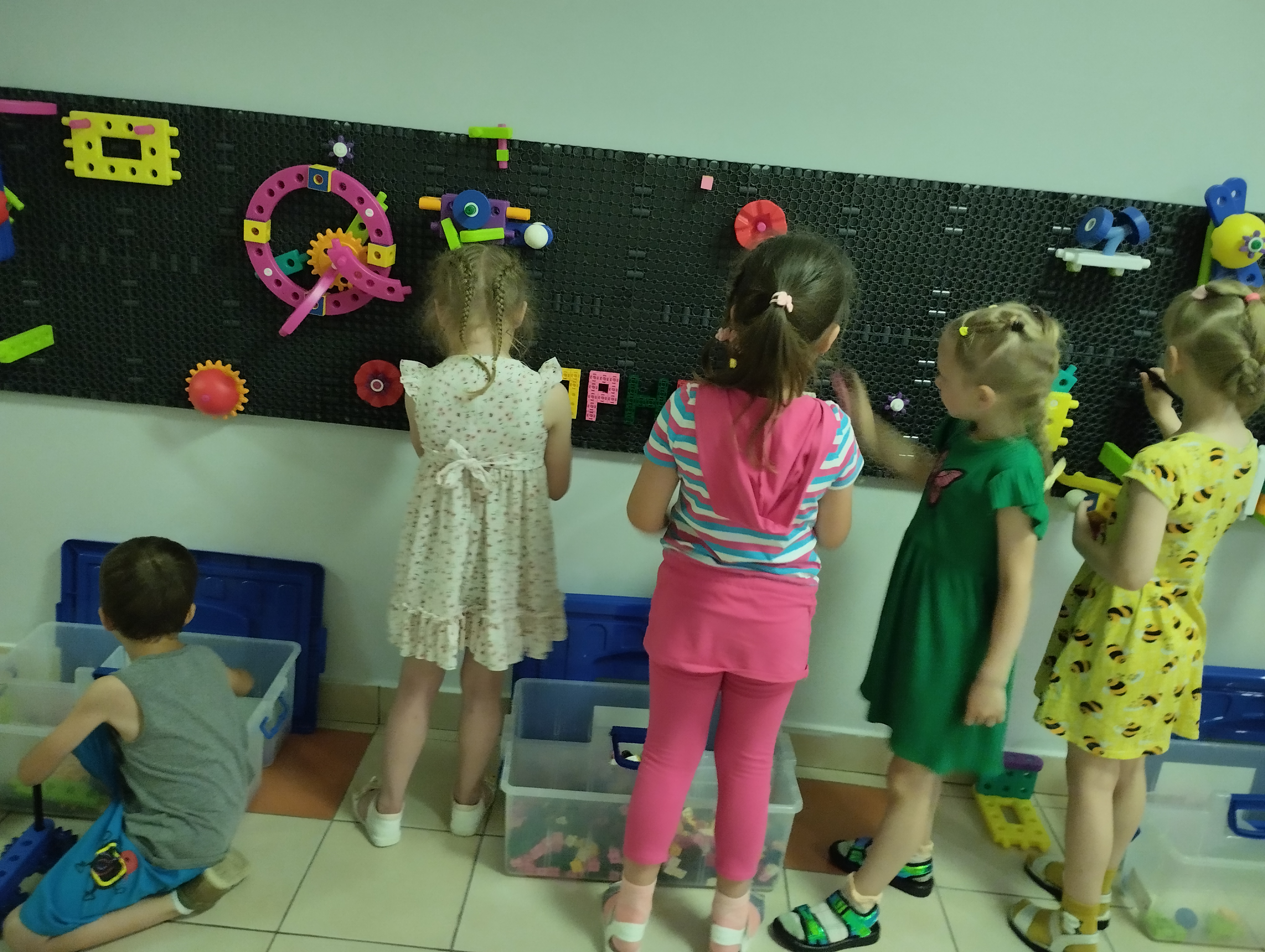 Дети получают доступ к большому количеству разнообразных по содержанию и размеру материалов, что трудно обеспечить в условиях конкретной группы. Инфраструктура имеет современный вид, яркий настенный конструктор привлекает детей и родителей; находится рядом с мультстудией, поэтому есть возможность взаимодействия: дети используют свои работы для создания мультэтюдов. В центре имеется возможность организовать деятельность с большим количеством детей одновременно ( и с одним видом конструктора, и с разными, объединяя для реализации общей задачи).