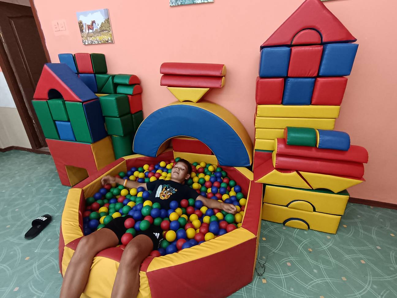 - Мягкая среда-обеспечивает комфорт, уют и безопасность (сенсорная палатка, мягкие модули, бассейн с шариками). Главная ее задача снятие эмоционального напряжения, агрессии, тревожности.