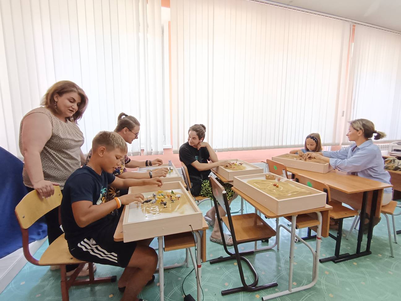 - Тактильная среда: световые столы и переносные ящики (для занятий с детьми с НОДА) для рисования песком, формы для работы с кинетическим песком, набор миниатюрных кукол для диагностики и расстановки, настенные модули для развития когнитивной сферы, оборудование для эбру-рисования на воде, набор для тестопластики. Это оборудование позволяет освоить новые ощущения и развить тактильную чувствительность.