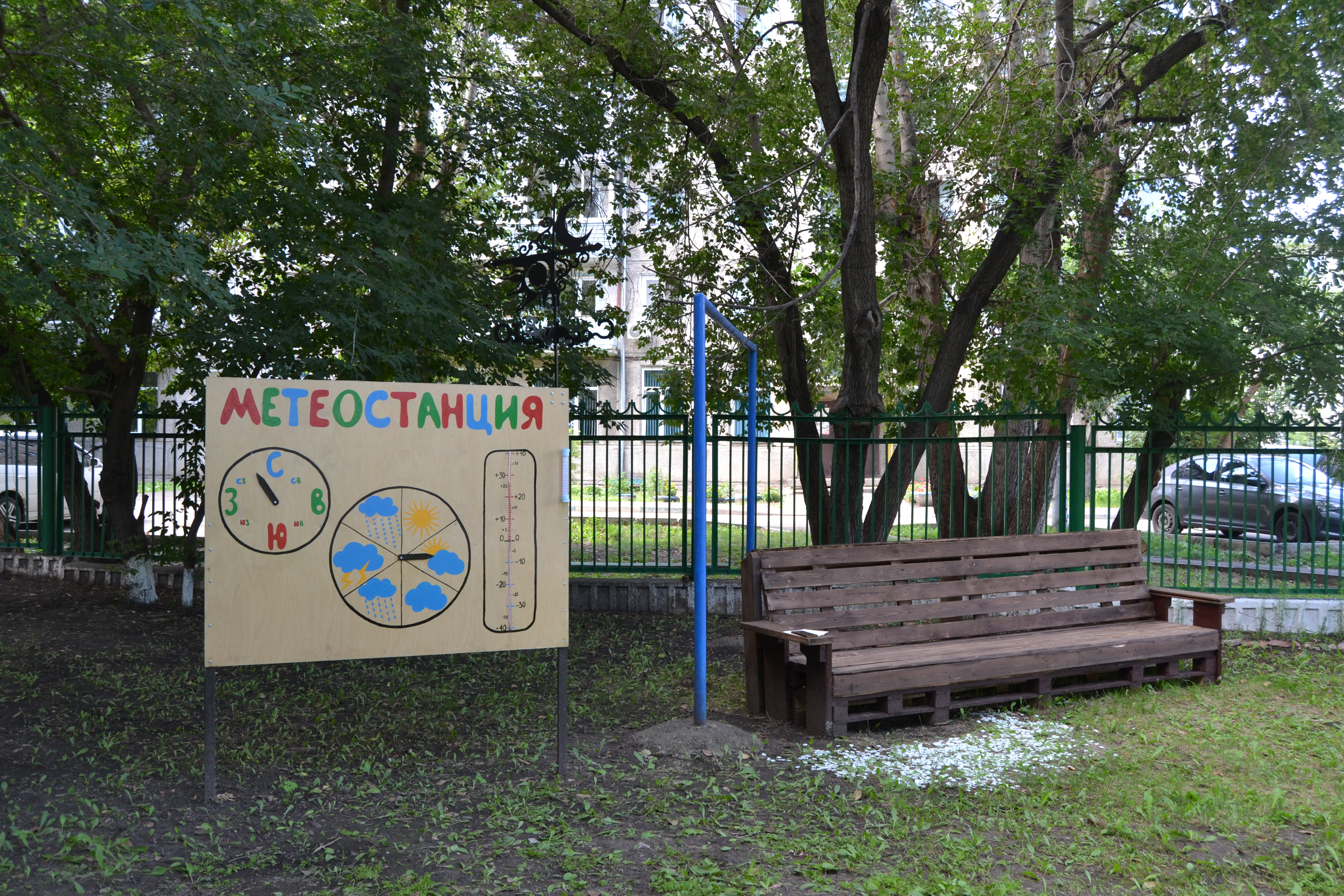 3. «Метеостанция», центр наблюдения и фиксирования природных явлений и состояния погоды (стенд с термометром, флюгером, барометром, дождемером и схемой рассказа с обратной стороны (для детей младшего возраста и детей с ОВЗ));