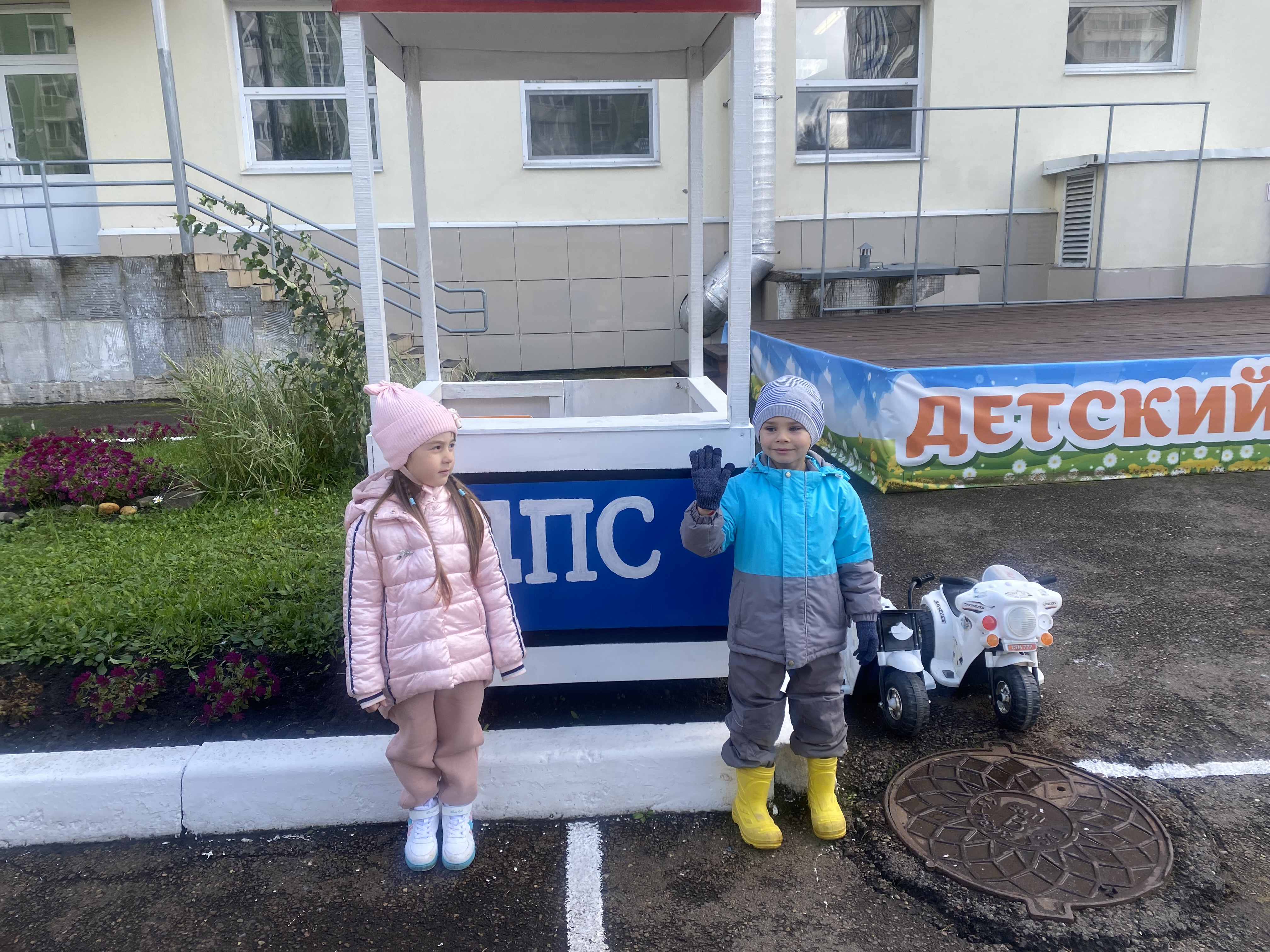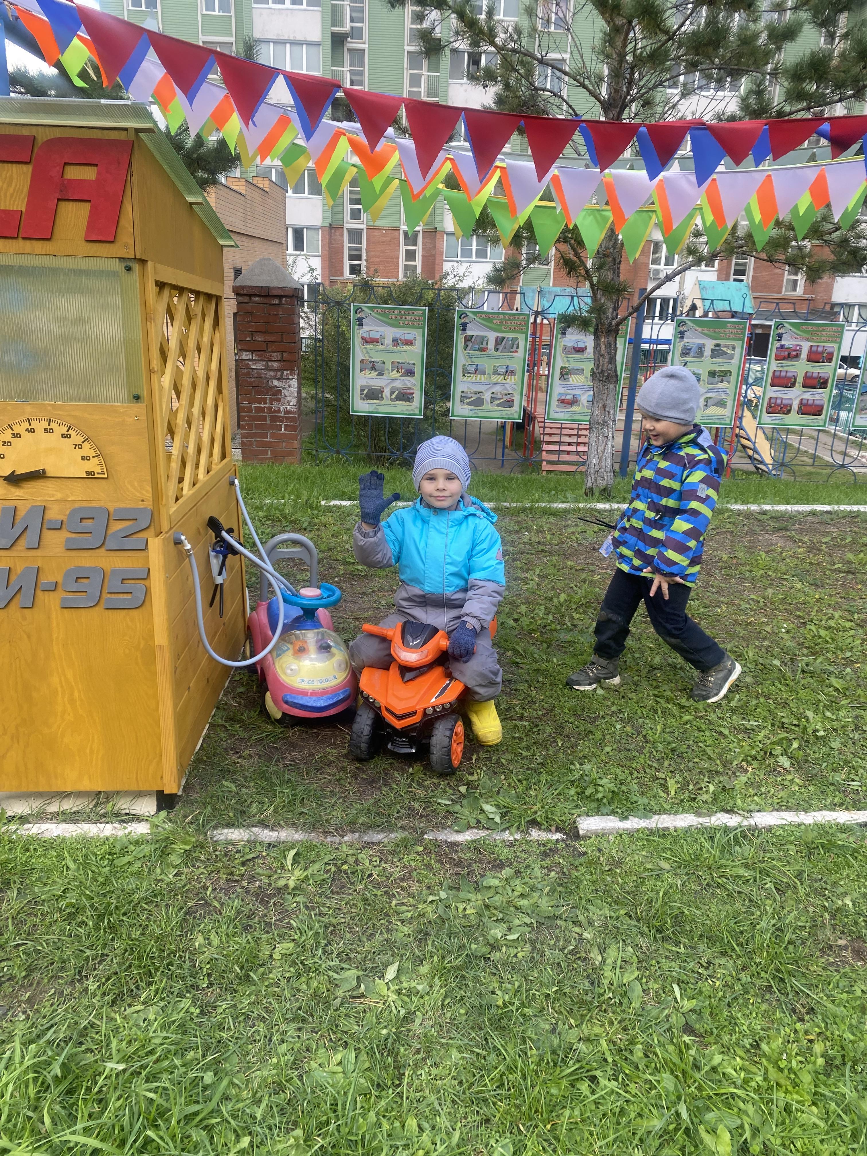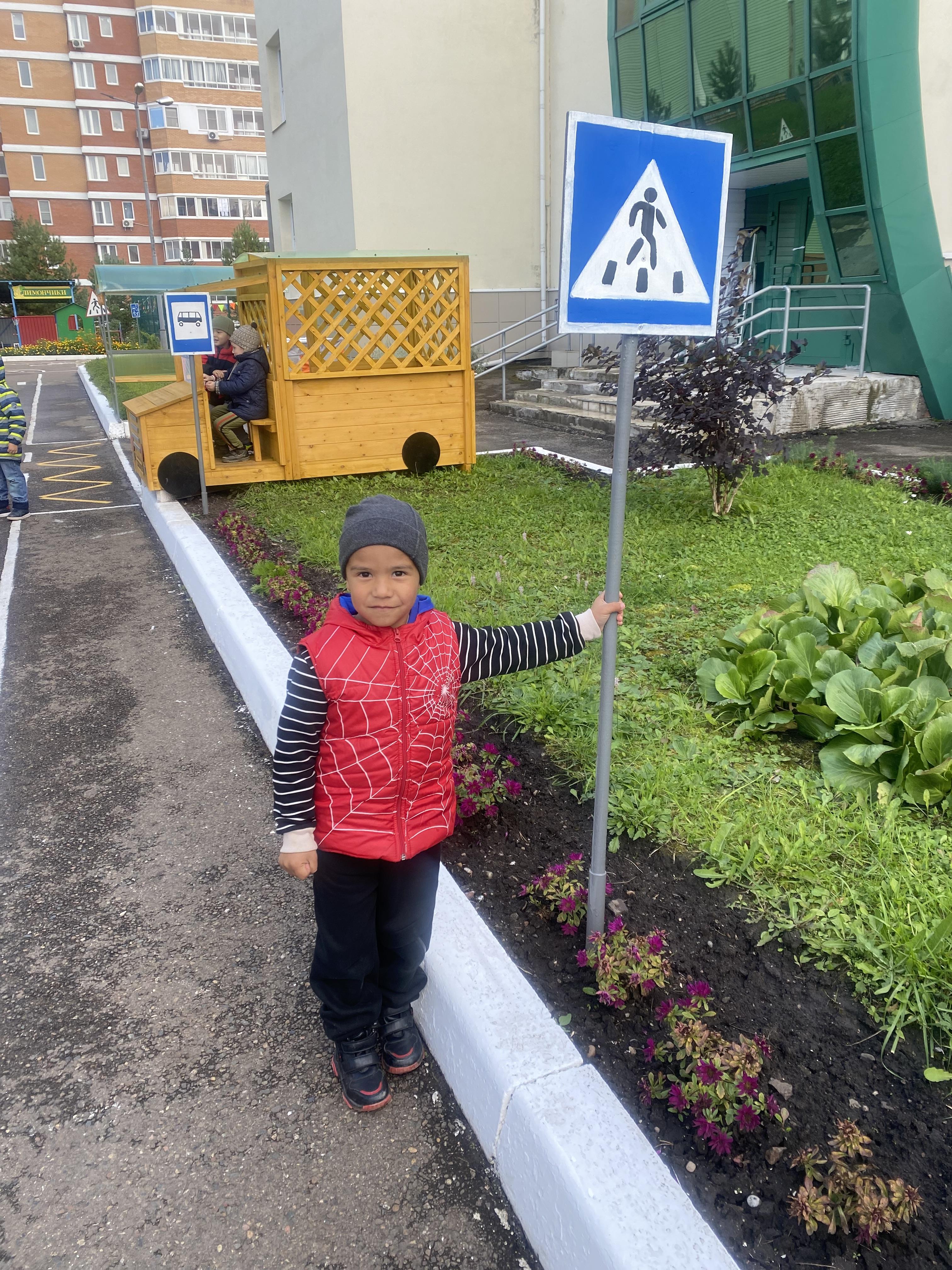 - Игровая площадка в холле на первом этаже, это оборудованный центр для моделирования ситуаций на дорогах, включающая разметку пешеходных переходов, дорожные знаки, светофоры, имитированные транспортные средства, также в ДОУ имеется мобильный Автогородок. Границы центра открыты, что делает его доступным и безопасным для детей.