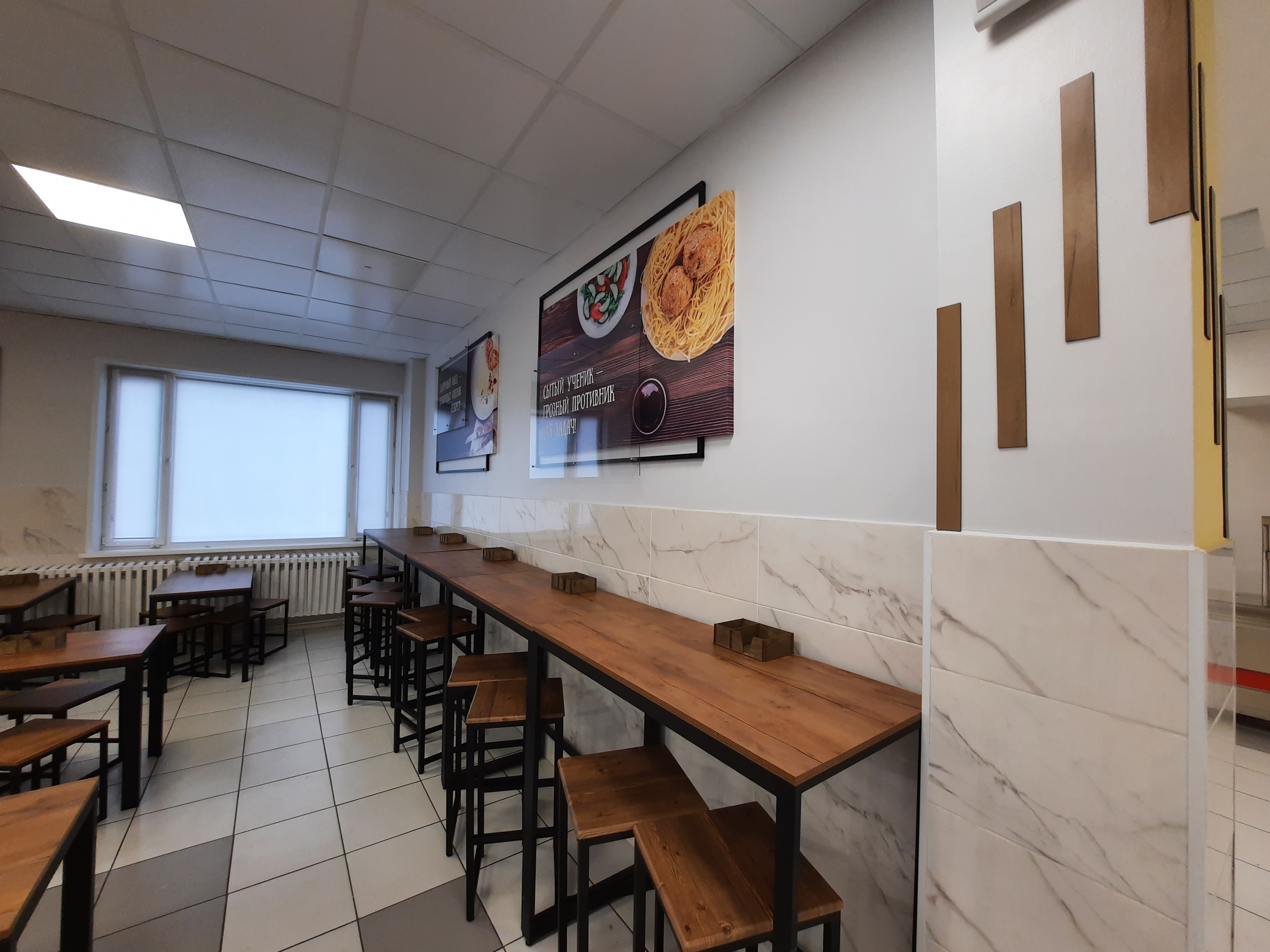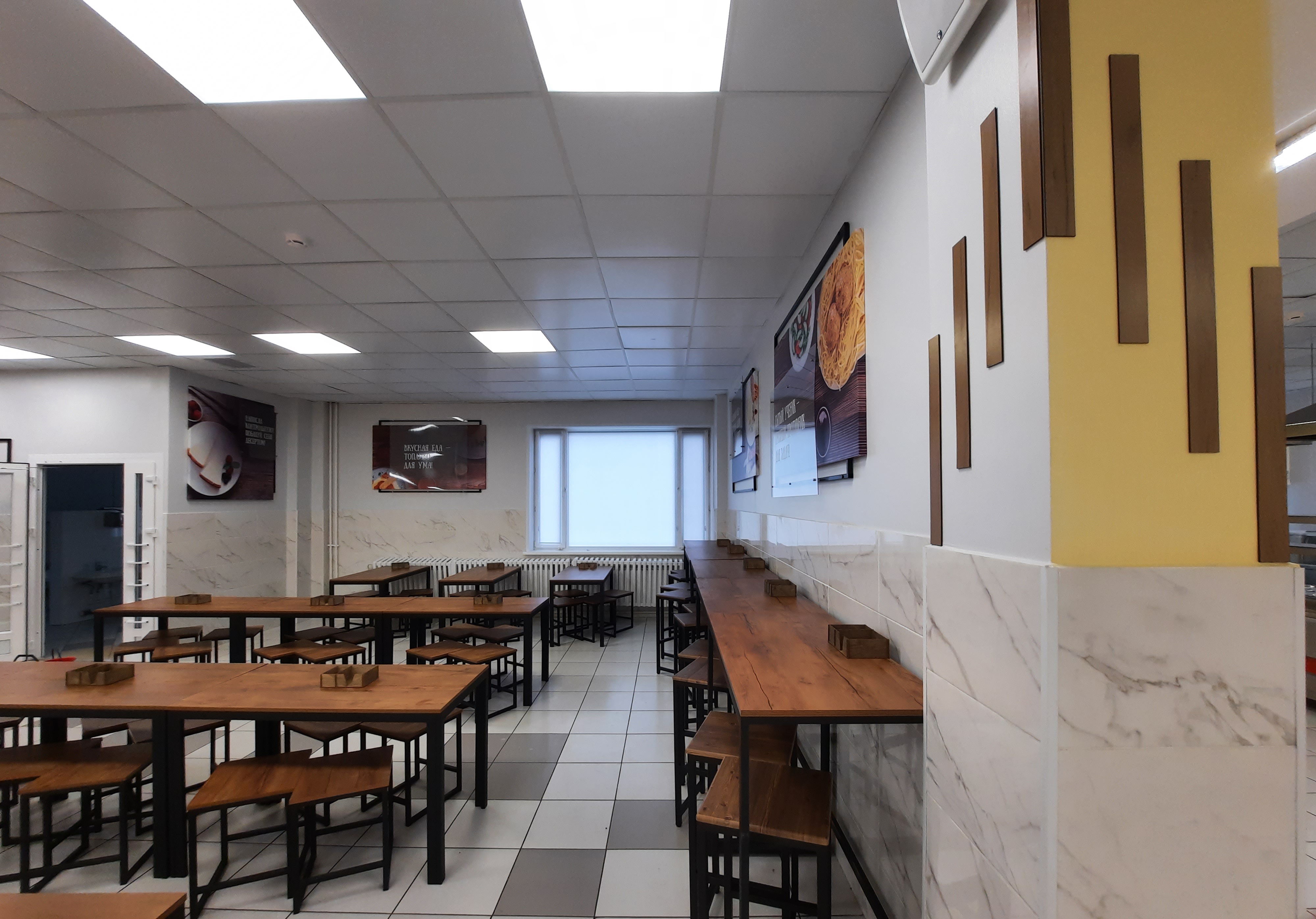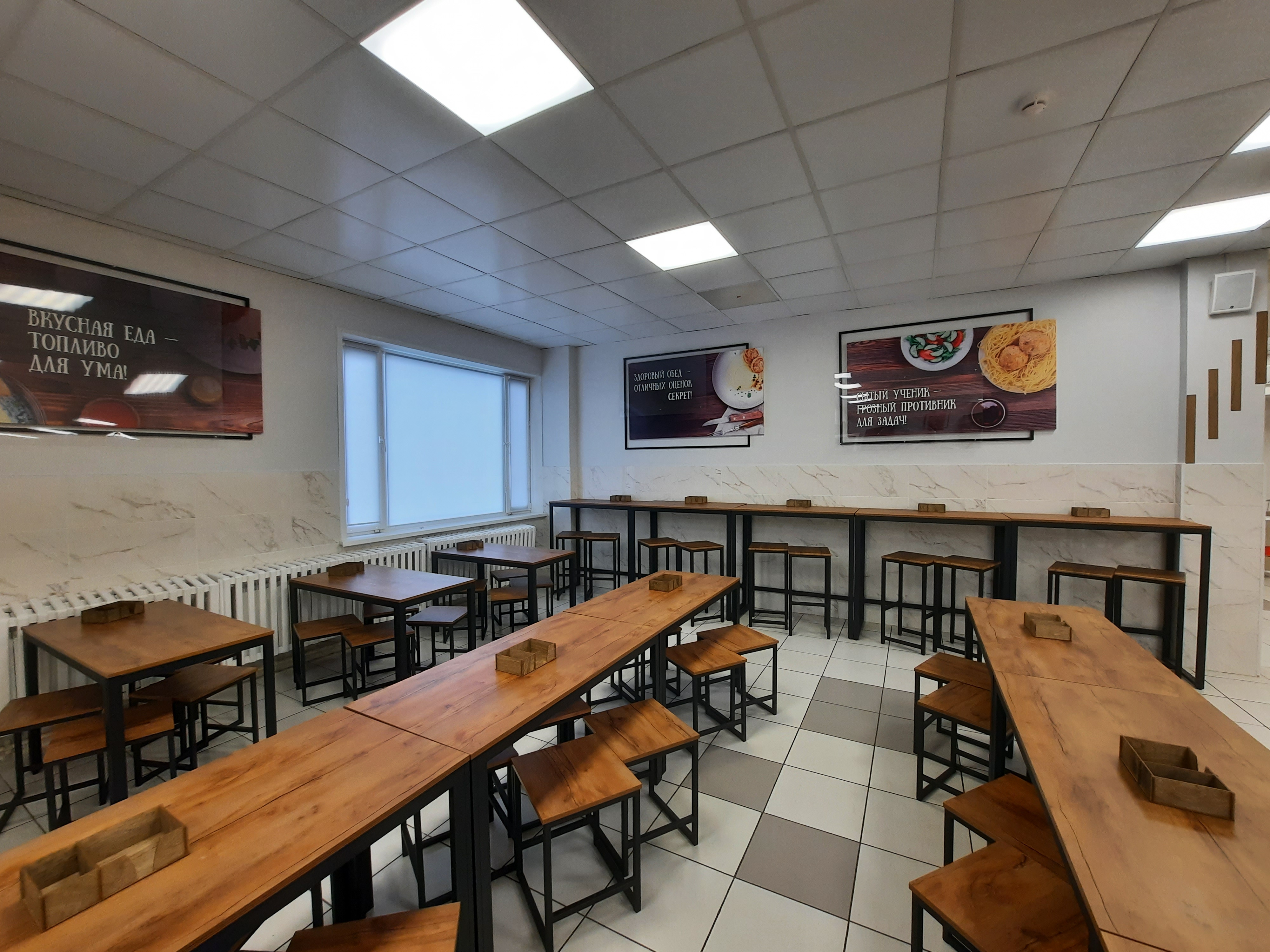 Главное отличие школьной столовой с зоной кафе от обычной столовой - его деловая и образовательная направленность.