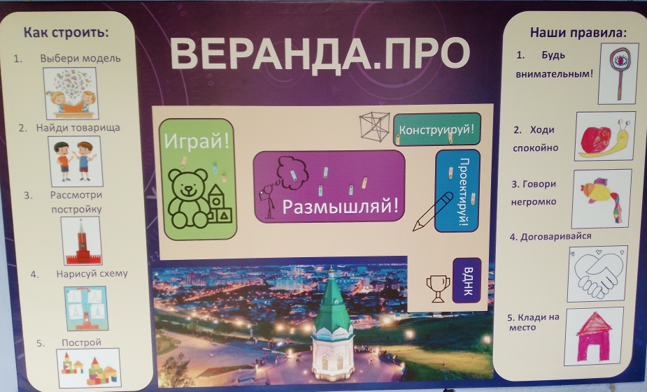 - Наличие организованного пространства на территории МБДОУ «Веранда.Про», включающего оборудованные локации «Играй!», «Проектируй!», «Размышляй!», «Конструируй!», «ВДНК» (выставка достижений наших конструкторов);
