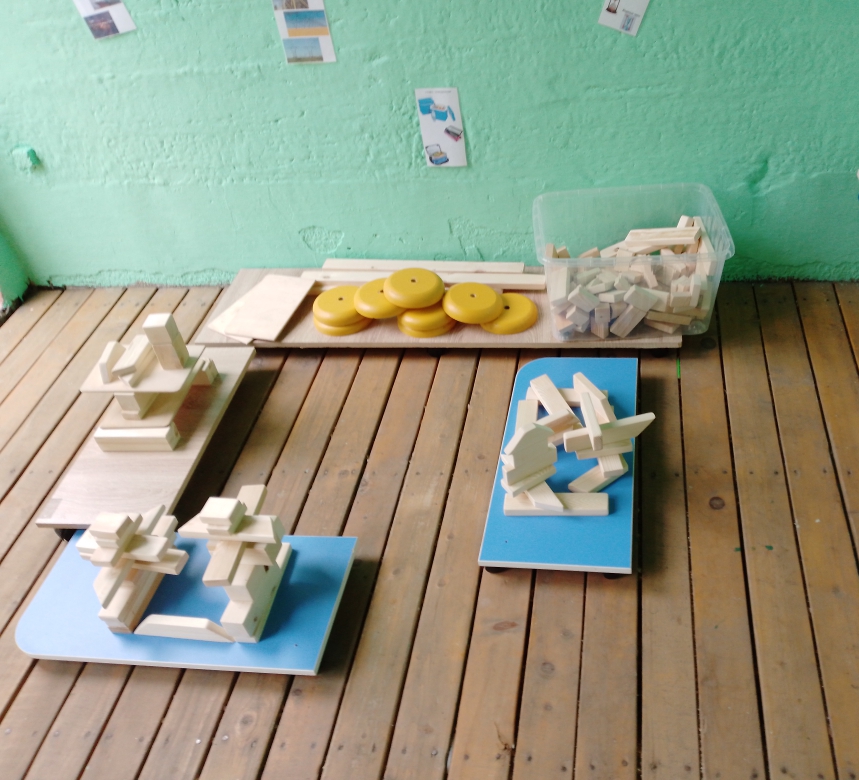 2. «Играй!», пространство для конструирования и игры с неоформленным материалом («Дачным конструктором», изготовленным самостоятельно из деревянных спилов от дачного строительства семей воспитанников);
