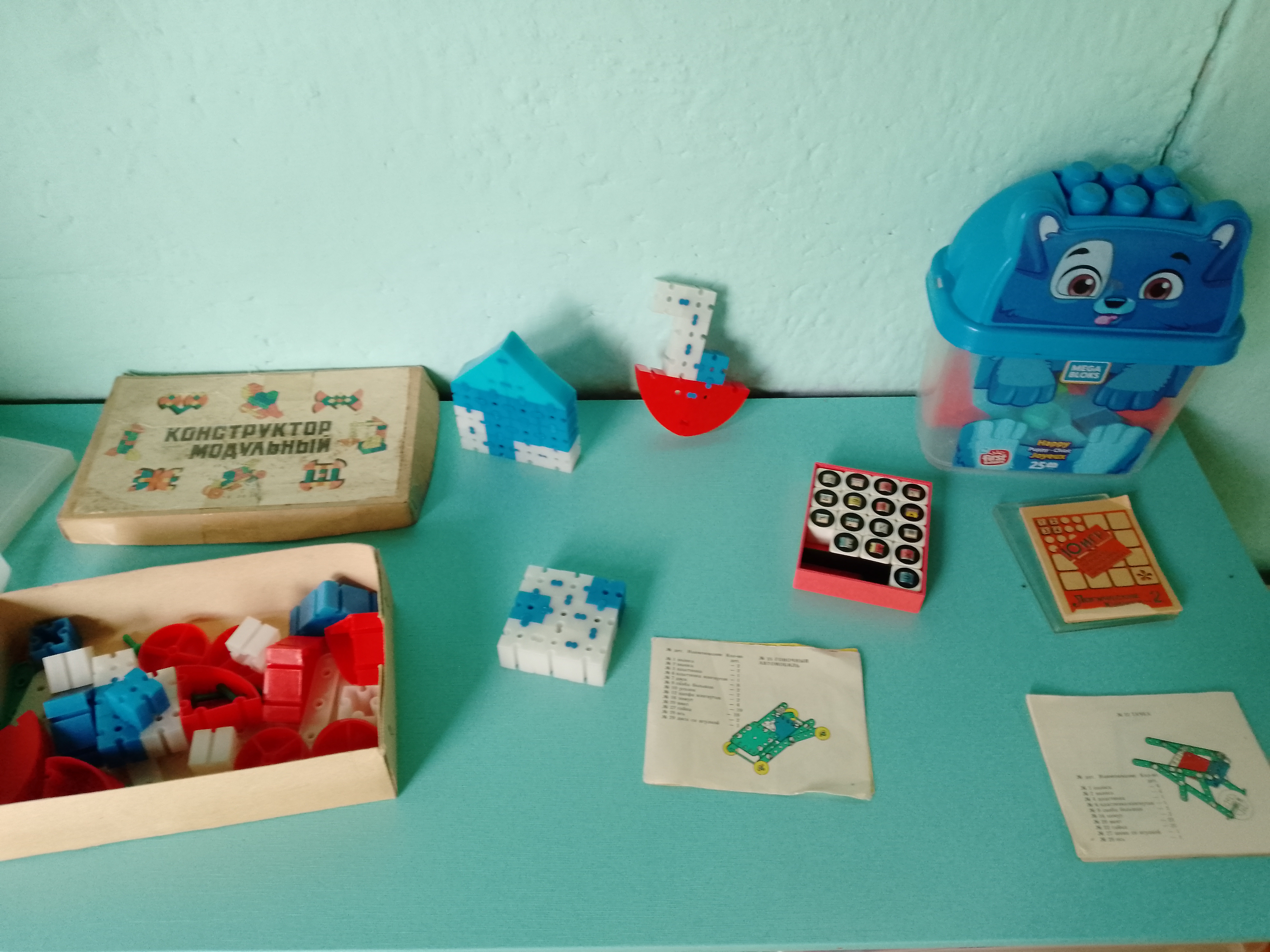 4. «Конструируй!», пространство для настольного конструирования и создания моделей «Горохового конструирования» (конструктора, изготовленного из натурального гороха и деревянных зубочисток) и «Ретро-конструирования» (конструкторы 1970-1990-х годов из запасов родителей воспитанников);