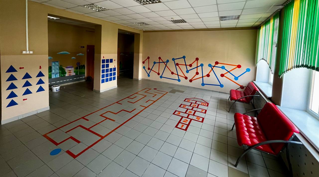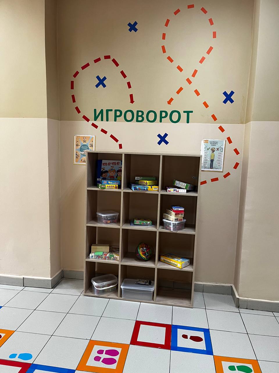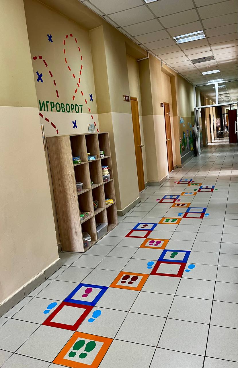Игровое пространство размещается в рекреационных зонах 3 этажа и в кабинете педагога-психолога