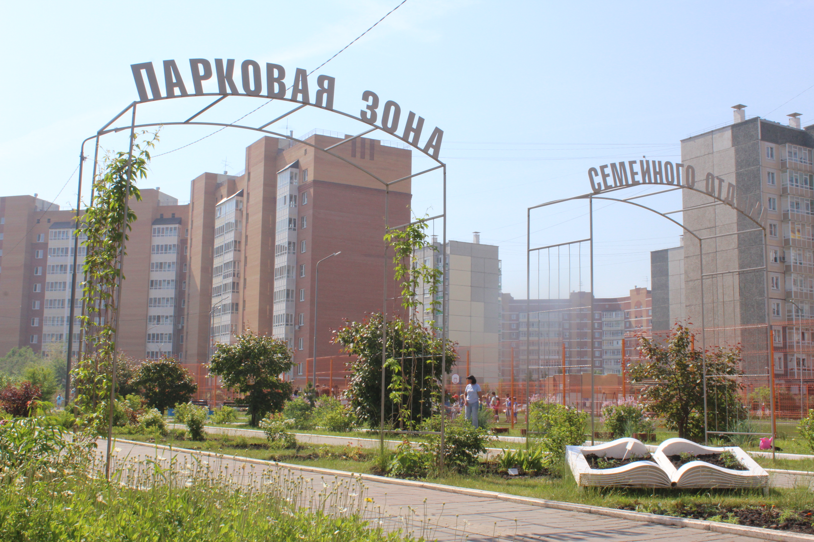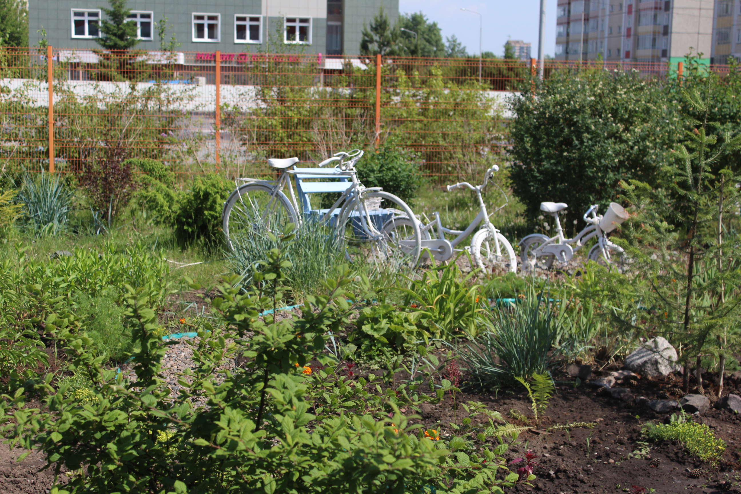 Для проведения занятий по некоторым предметам («Изобразительное искусство», «Технология». Среда включает в себя площадки с ландшафтным дизайном и скамейками для образовательной деятельности, отдыха и расслабления: «Рокарий музыки», «Лесной уголок», «Аллея малышей - карандашей», «Часы», «Альпийская горка», «Богатство Сибири». В парке произрастают в том числе и лекарственные растения, богатые полезными фитонцидами. Площадки для занятий «Физической культурой и спортом»: футбольное поле с мягким покрытием, обеспечивающим безопасность детей во время занятий физической культурой и спортом и массовых спортивных мероприятий.