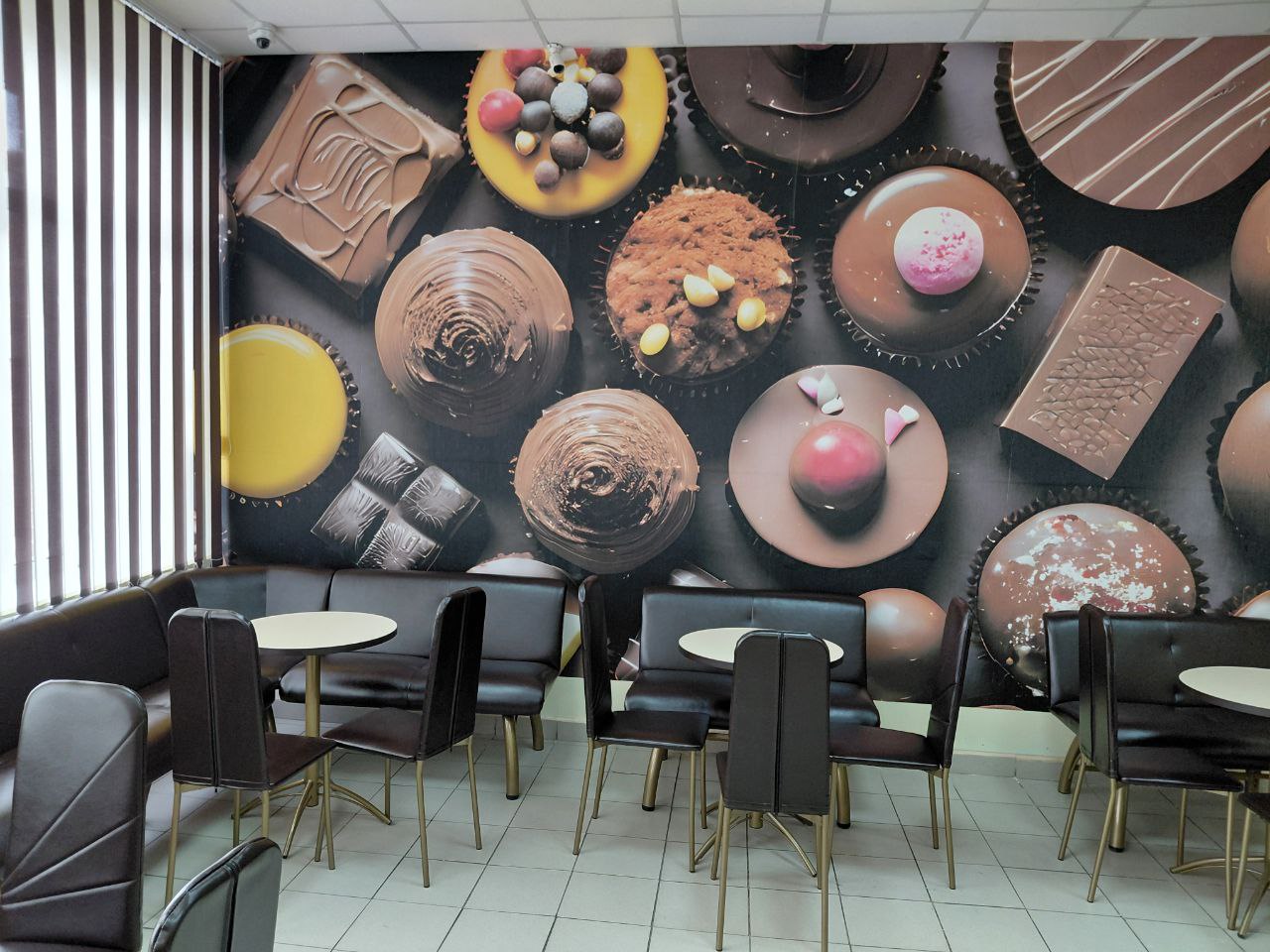 В кафе 40 посадочных мест, установлено современное оборудование: холодильник-морозильник, посудомоечная машина, витрины-холодильники, умывальники, сушки для рук.
