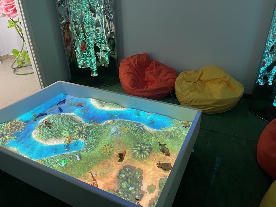 - Новизна проектной идеи – оборудование сенсорной комнаты является инновационным изобретением. В интерактивной песочнице, как и в обычной, основную роль играет песок, только эта песочница оснащена современным оборудованием и программным обеспечением, которое создает на песке эффект дополненной реальности;