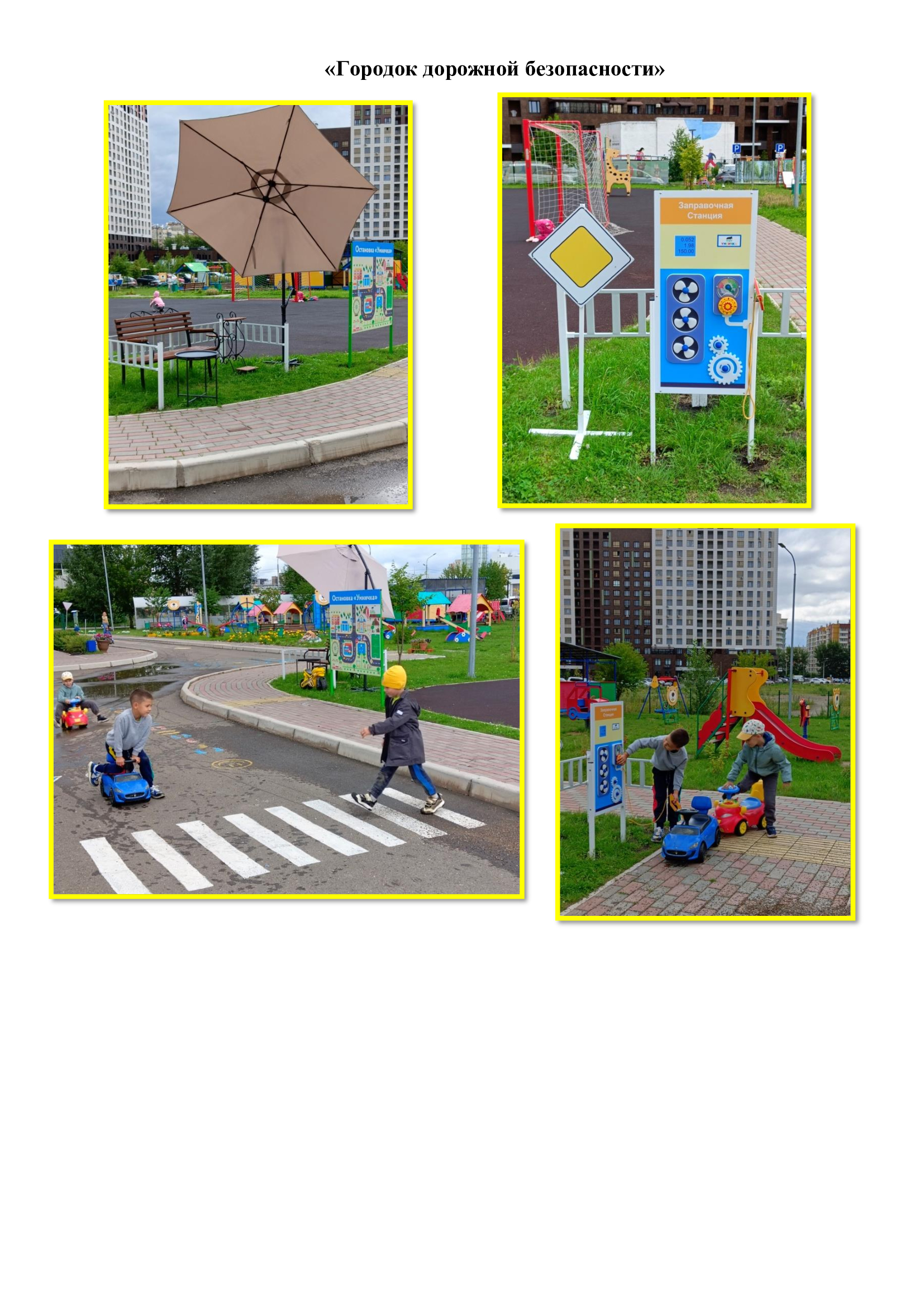 Организовано 11 тематических центров активности вокруг здания детского сада: библиотека «У Кота-сказочника», «Патриотическая палитра», «Пасека», «Птичья столовая», «Экосадик», «Лаборатория чудес», огород "Веселые огородники", «Лесной театр», «Музыкальная поляна», «Спортландия» и «Городок дорожной безопасности».