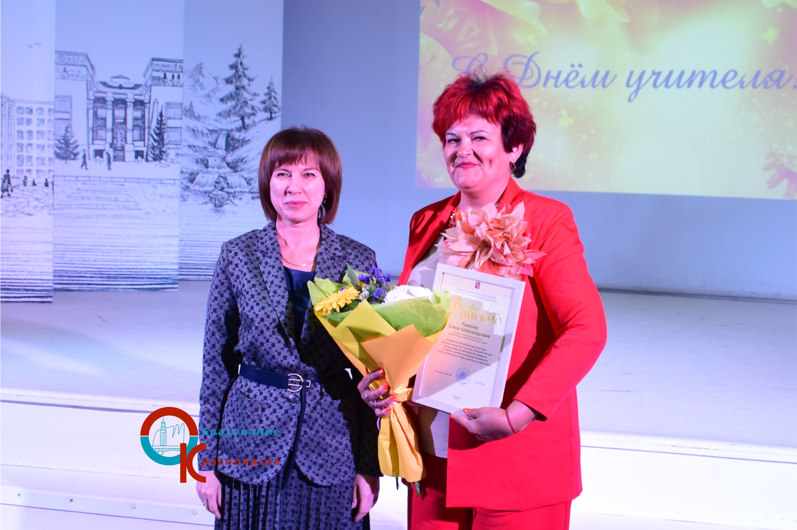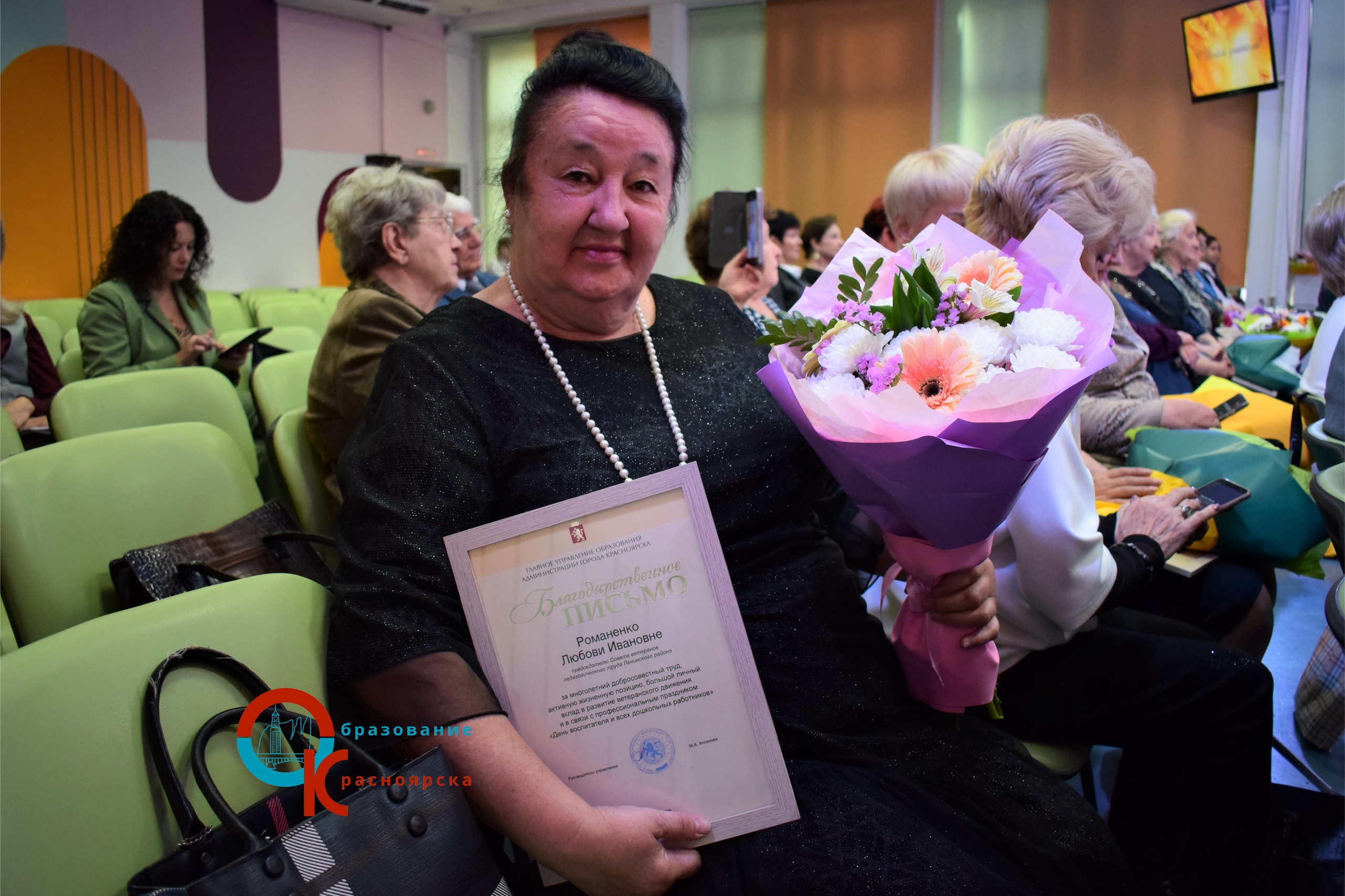 Марина Александровна Аксенова, руководитель главного управления образования, поздравила гостей с наступающим праздником и наградила ветеранов благодарственными письмами.